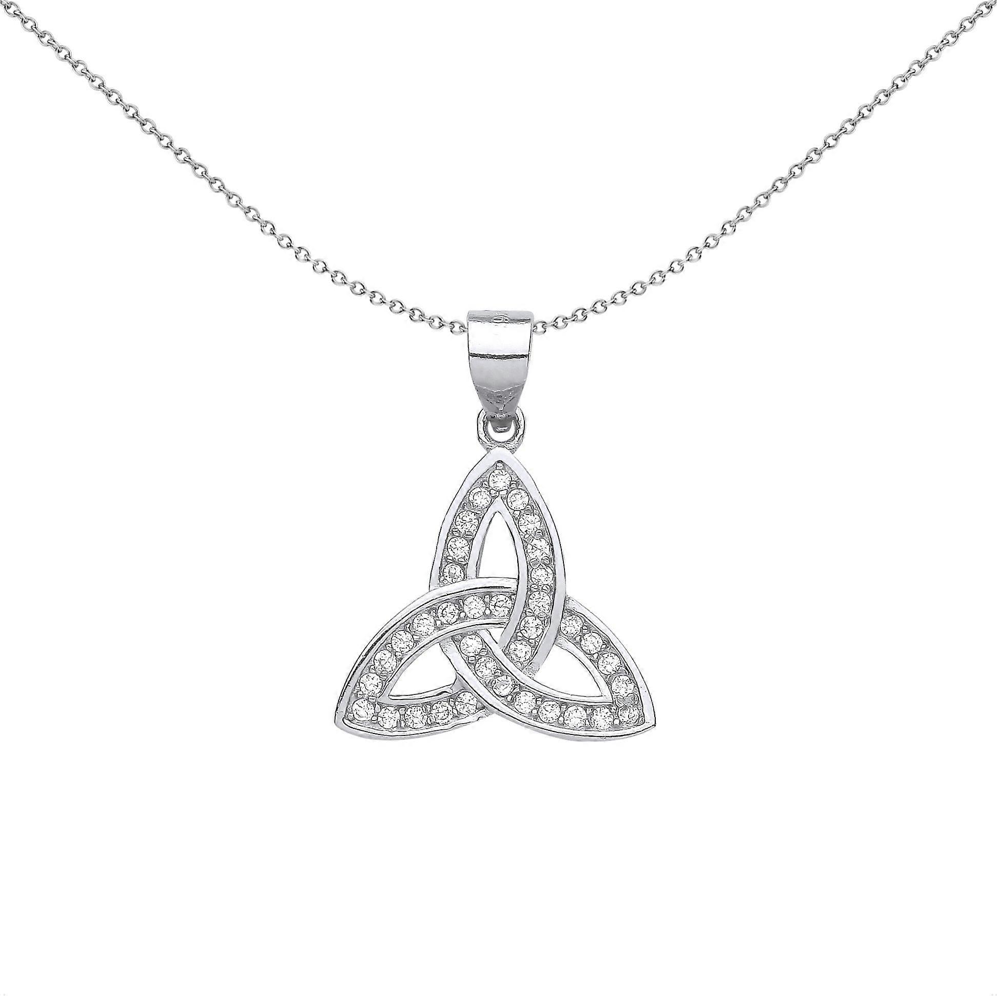 Jewelco London Ladies Rhodium Plated Sterling Silver CZ Trinity Knot Charm Pendant Necklace 18 inch