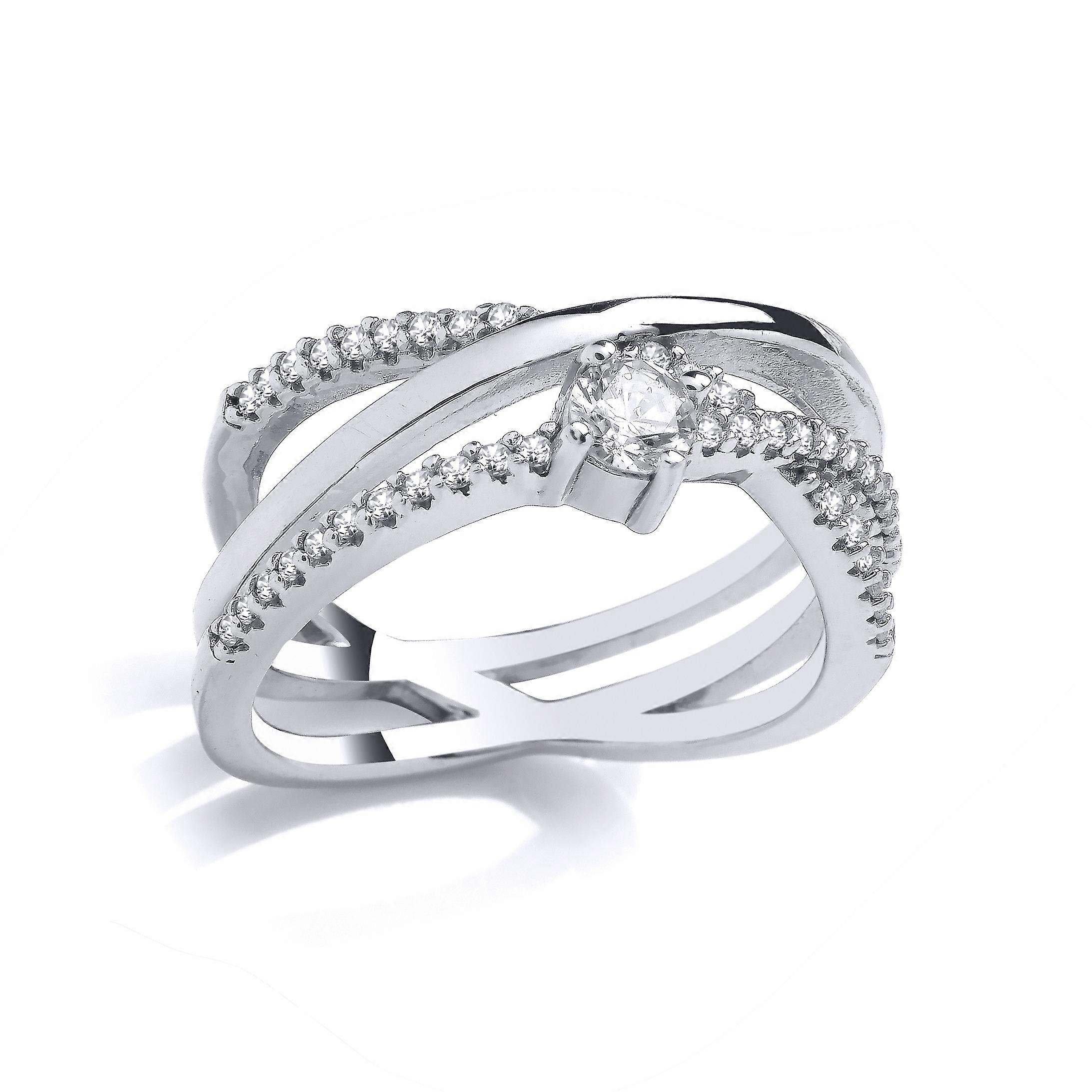 Jewelco London Ladies Rhodium Plated Sterling Silver CZ Triple Band Solitaire Eternity Crossover Ring