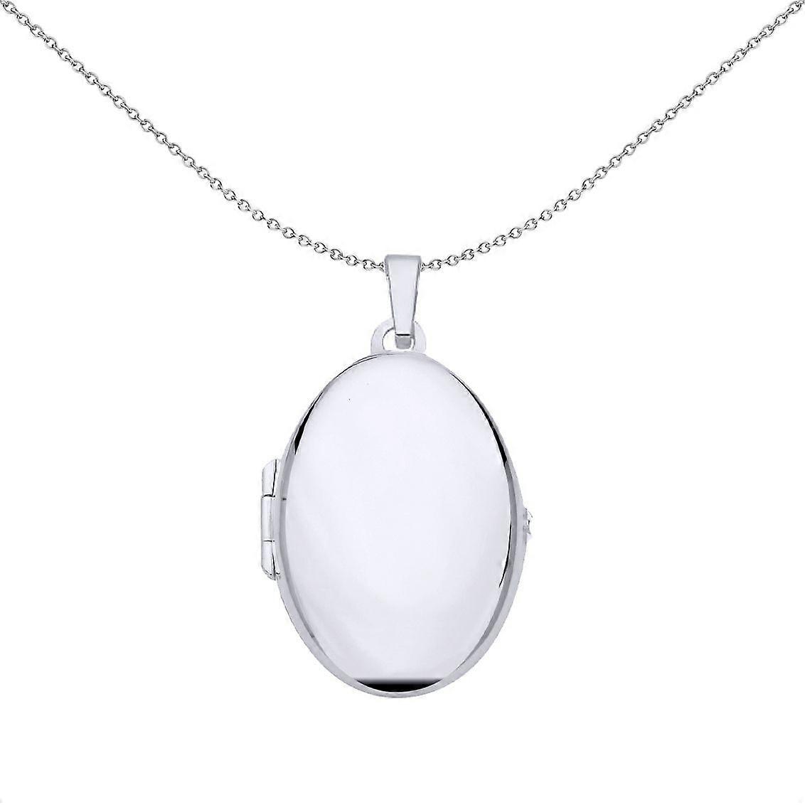 Jewelco London Ladies Rhodium Plated Sterling Silver Disc Tag Charm Oval Locket Pendant Necklace 18 inch
