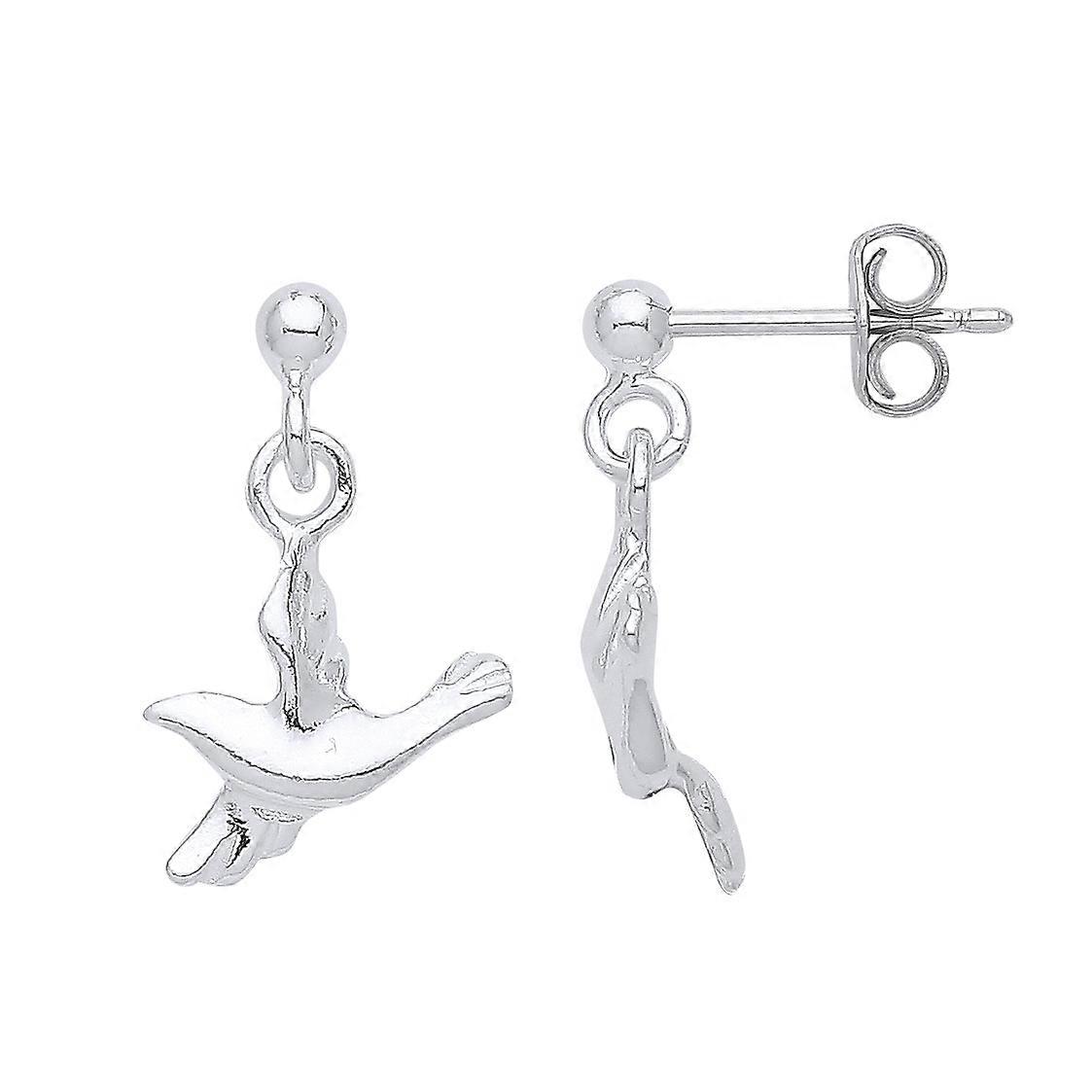 Jewelco London Ladies Rhodium Plated Sterling Silver Dove of Peace Ball Drop Earrings
