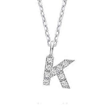 Jewelco London Ladies Rhodium Plated Sterling Silver Encrusted Mini Initial Pendant Necklace 16 + 1 inch