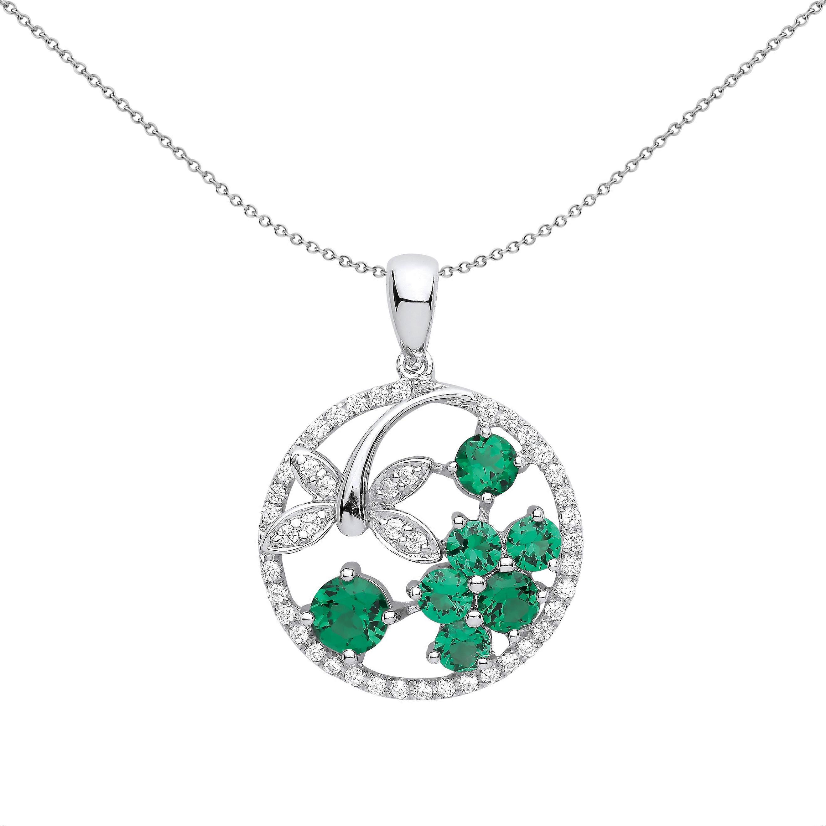Jewelco London Ladies Rhodium Plated Sterling Silver Green CZ Dragonfly Nest Circle of Life Pendant Necklace 18 inch