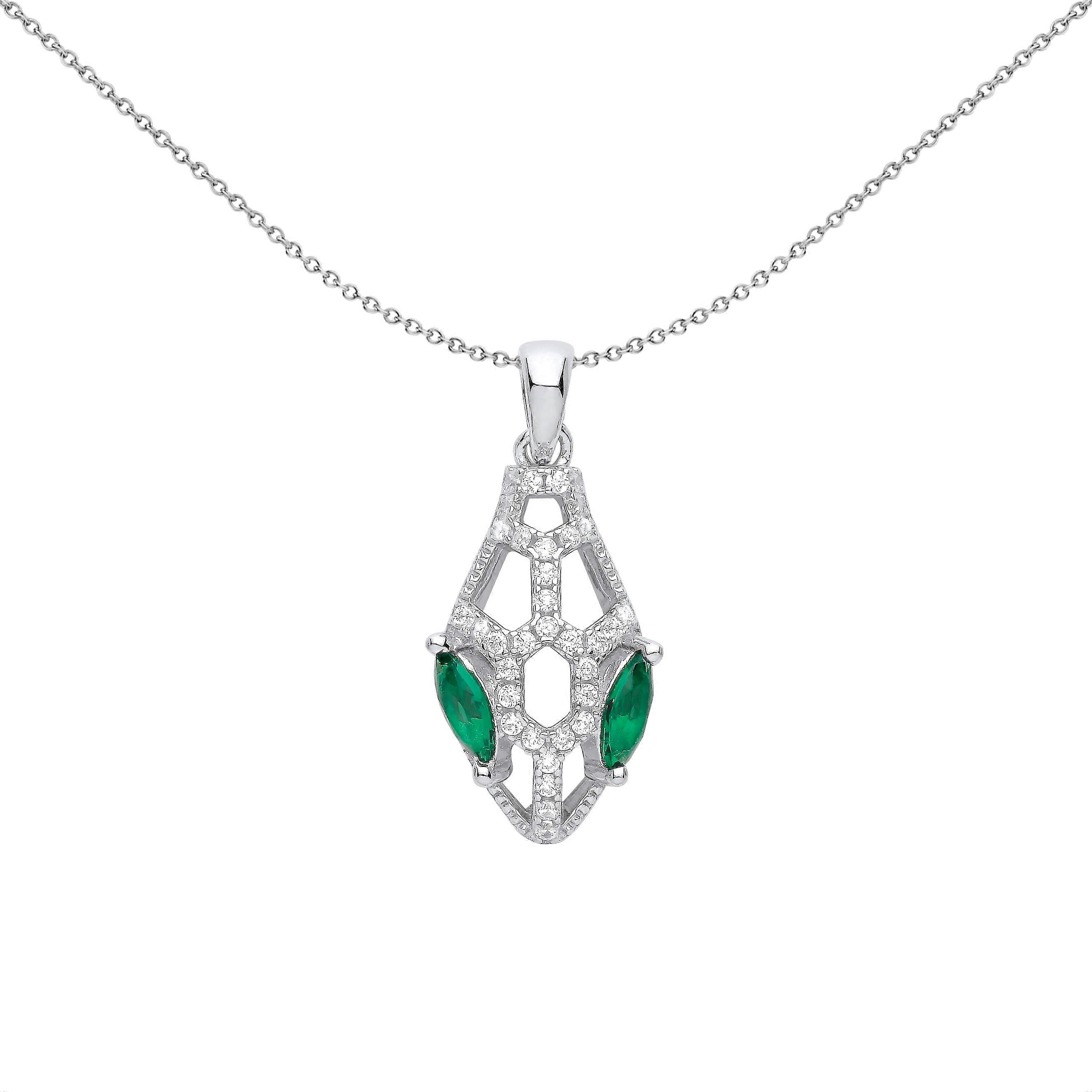 Jewelco London Ladies Rhodium Plated Sterling Silver Green Marquise CZ Snake Head Green Eyes Pendant Necklace 18 inch