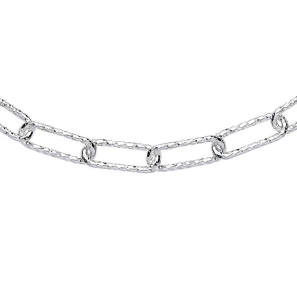 Jewelco London Ladies Rhodium Plated Sterling Silver Hammered Paperclip Pill Chain Necklace 6mm 17 inch