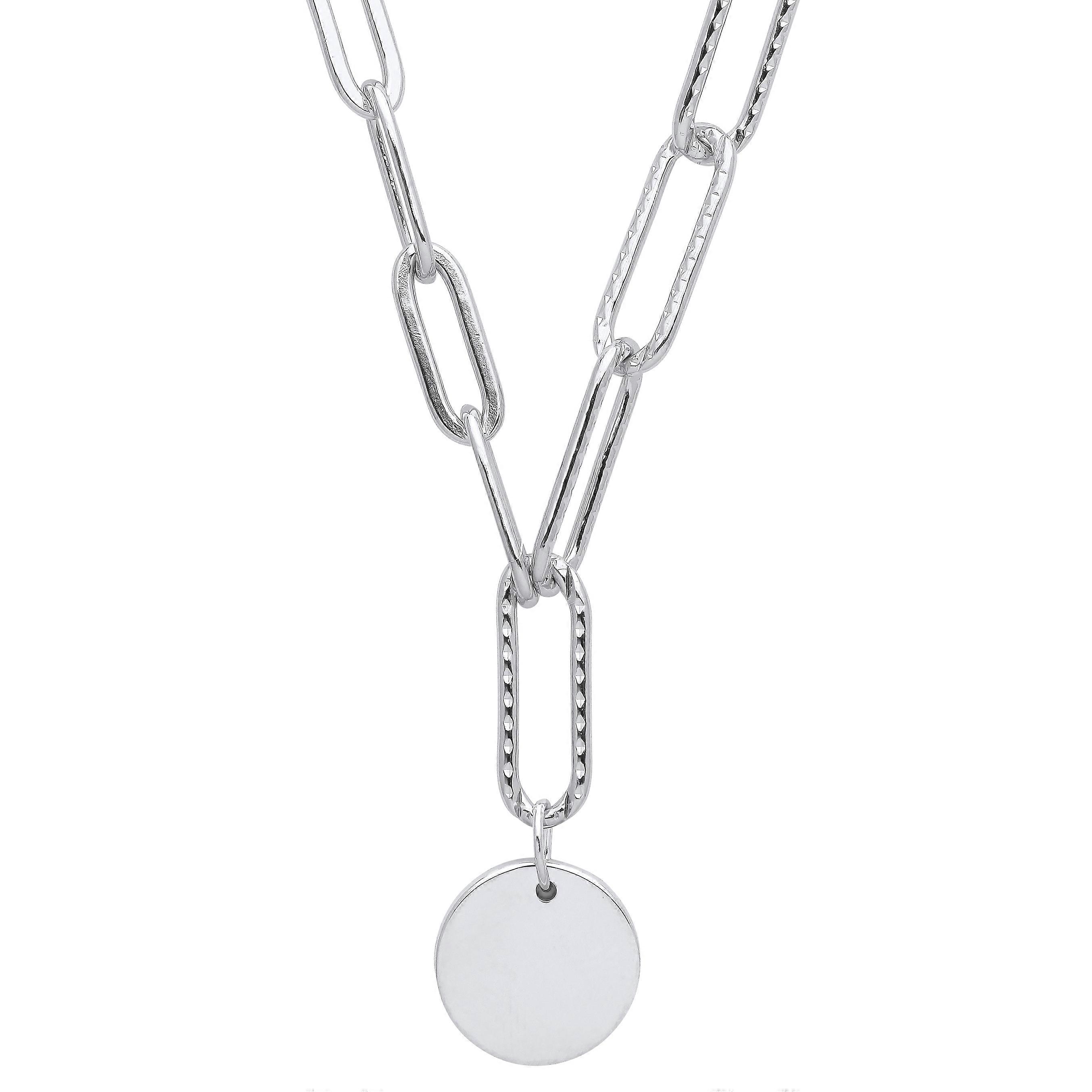 Jewelco London Ladies Rhodium Plated Sterling Silver Hammered Paperclip Round Disc Lavalier Necklace 18 + 2 inch