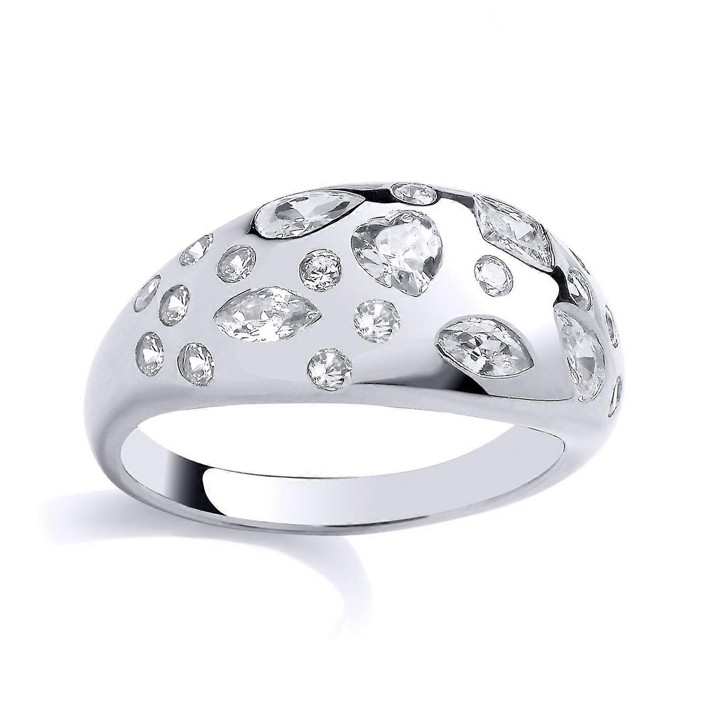 Jewelco London Ladies Rhodium Plated Sterling Silver Heart Marquise Pear CZ Domed Rain Dance Dress Ring