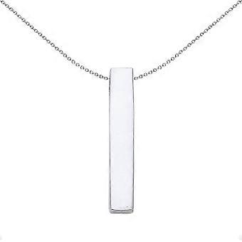 Jewelco London Ladies Rhodium Plated Sterling Silver Hollow Blank Long Rectangular Bar Pendant Necklace 18 inch