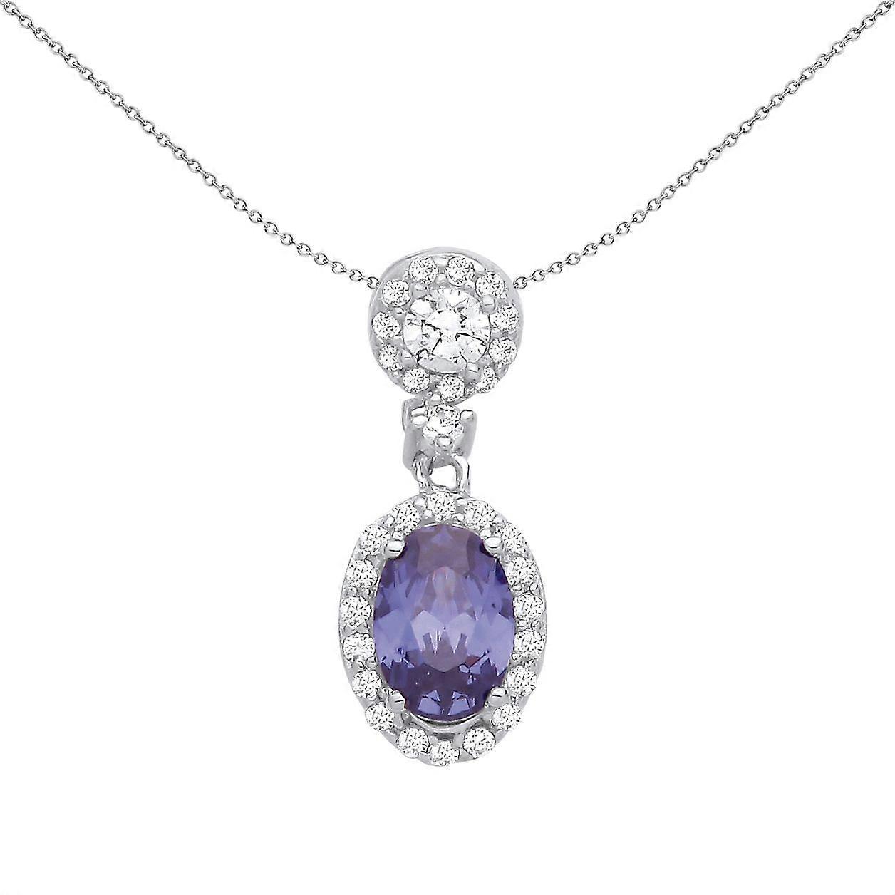 Jewelco London Ladies Rhodium Plated Sterling Silver Indigo Oval CZ Double Halo Cluster Raindrop Pendant Necklace 18 inch
