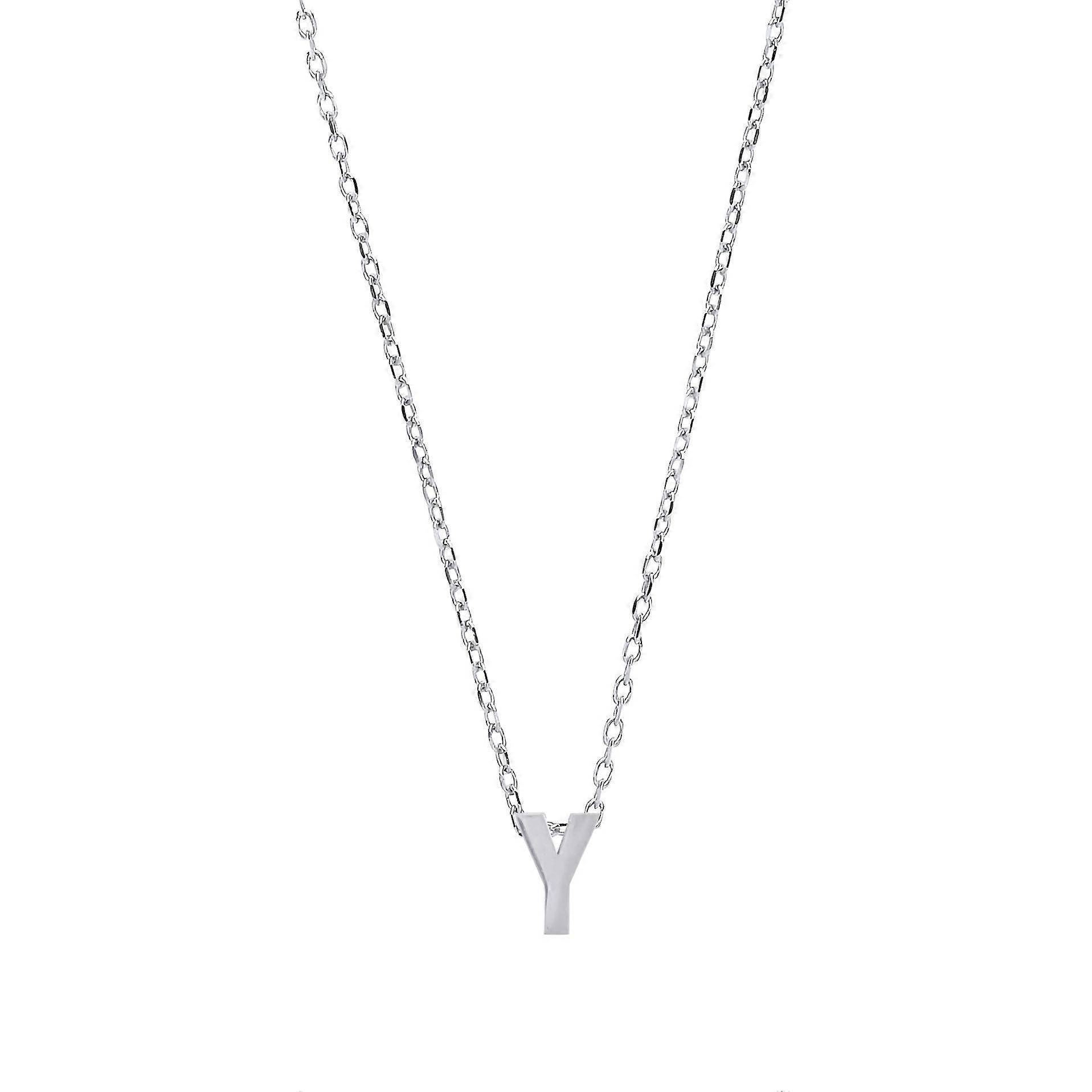 Jewelco London Ladies Rhodium Plated Sterling Silver Letter Y Initial Pendant Necklace 15 + 1 inch