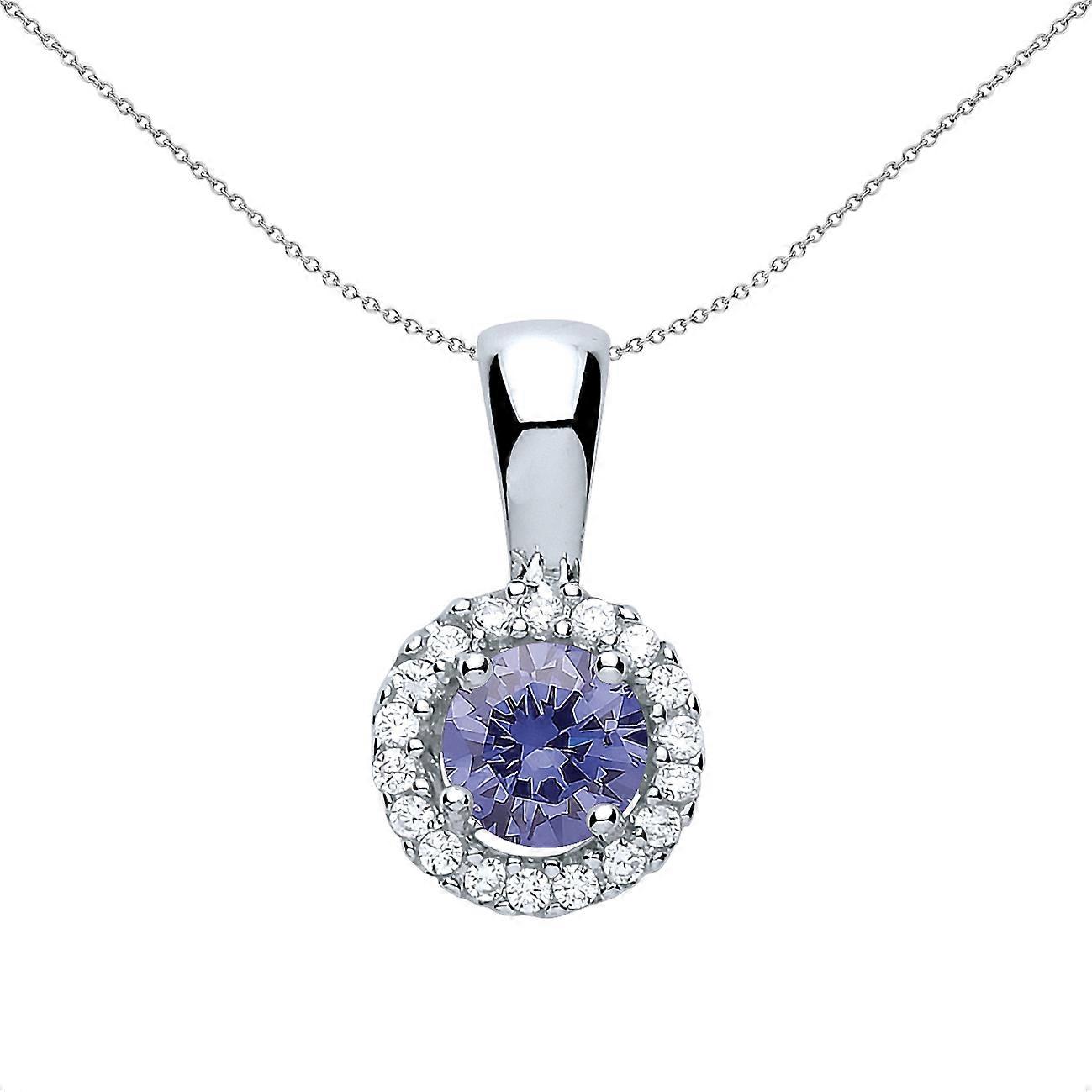 Jewelco London Ladies Rhodium Plated Sterling Silver Lilac CZ Solitaire Halo Pendant Necklace 18 inch