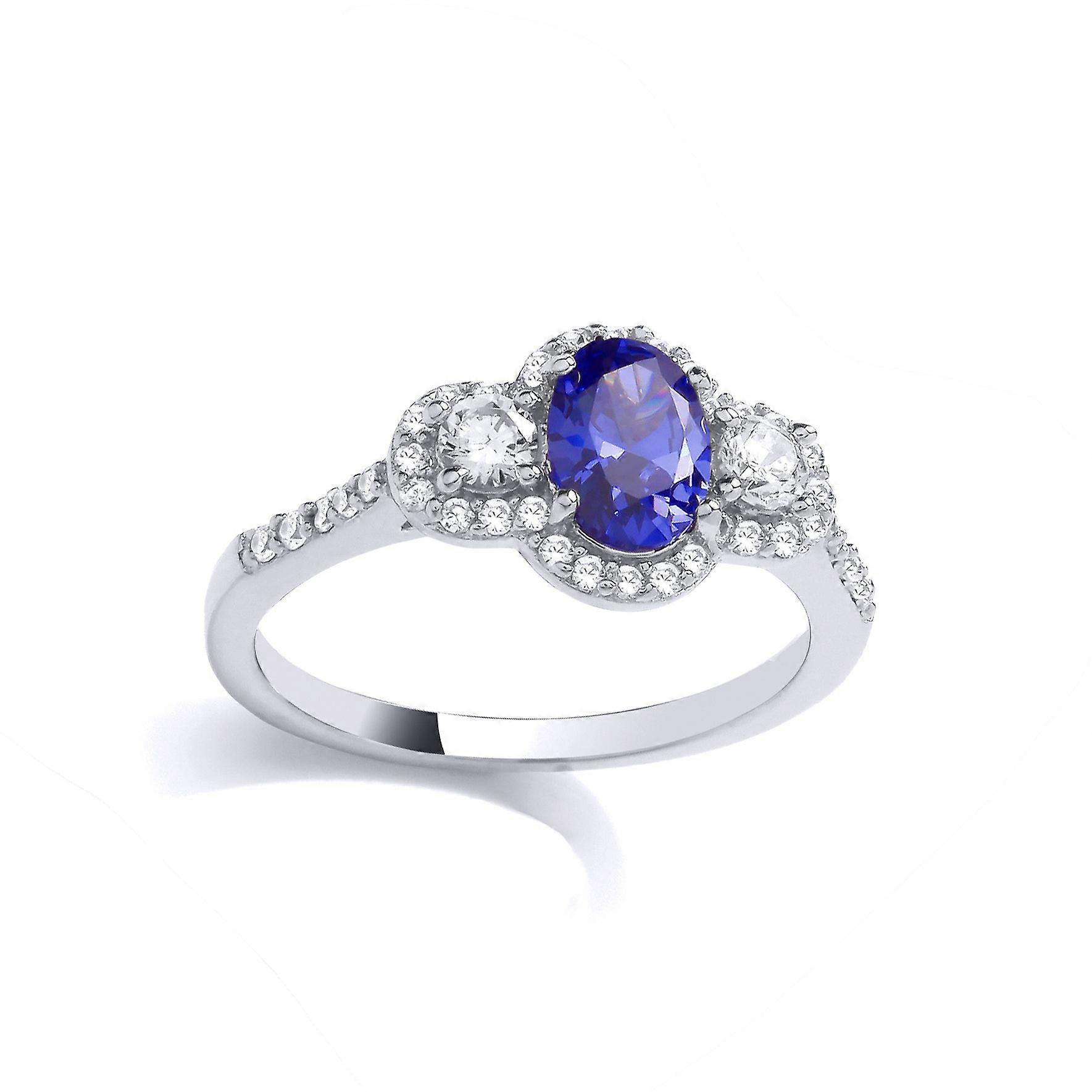 Jewelco London Ladies Rhodium Plated Sterling Silver Lilac Oval CZ Triple Halo Cluster Raindrop Cocktail Ring