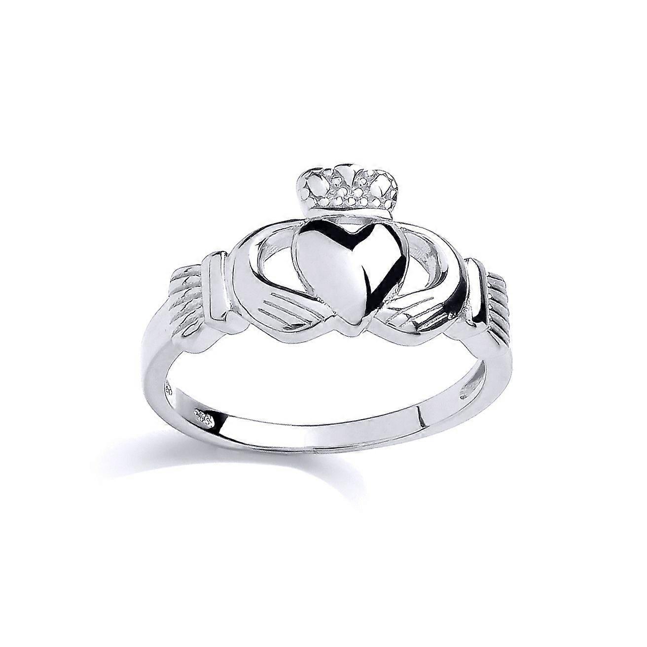 Jewelco London Ladies Rhodium Plated Sterling Silver Love Heart Crown Claddagh Claddagh Ring