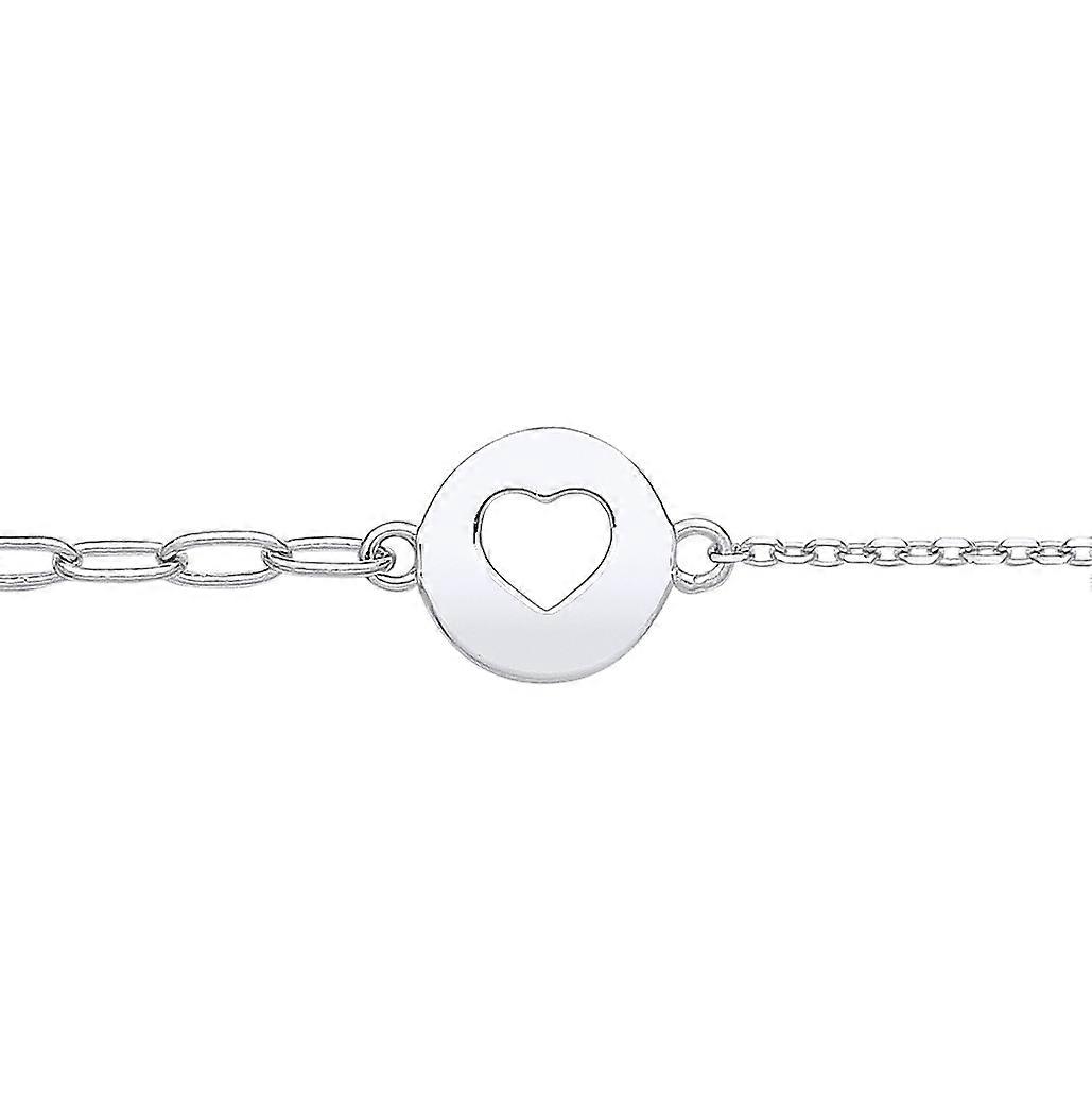 Jewelco London Ladies Rhodium Plated Sterling Silver Love Heart Round Disc Tag Charm Bracelet 2mm 7 + 1 inch