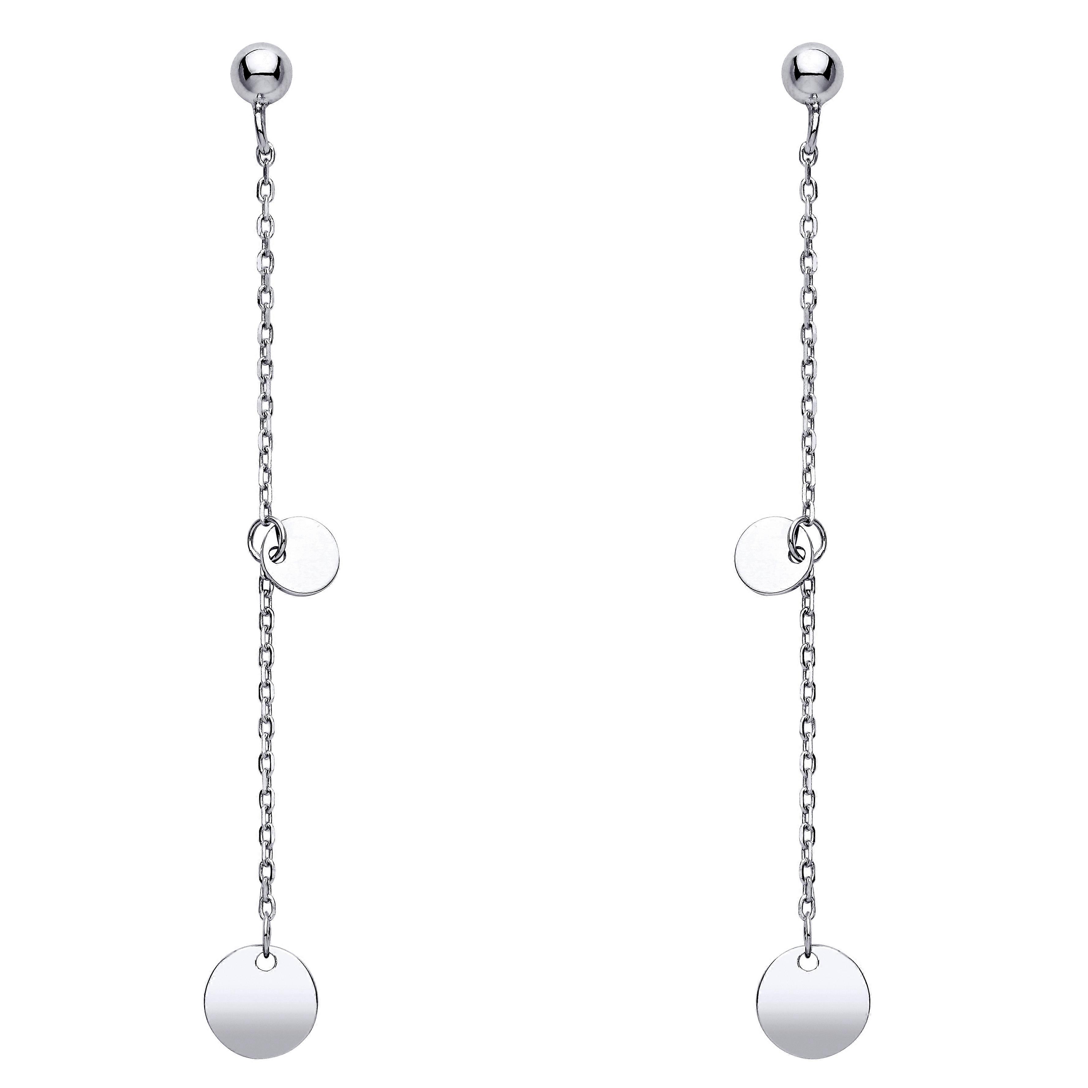 Jewelco London Ladies Rhodium Plated Sterling Silver Medallion Disc Shoulder Duster Ball Drop Earrings