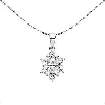 Jewelco London Ladies Rhodium Plated Sterling Silver Oval CZ Oval Snowflake Cluster Pendant Necklace 18 inch