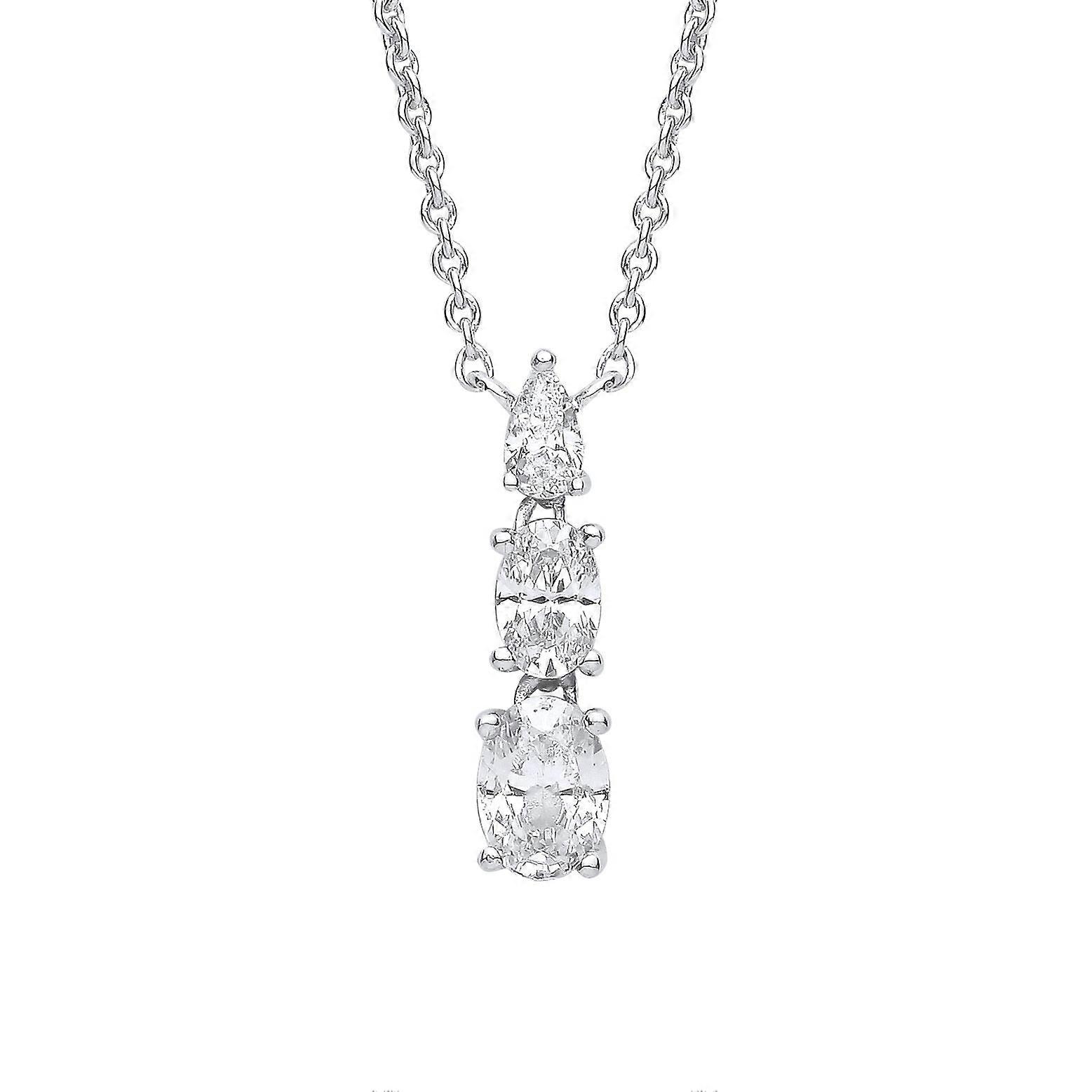 Jewelco London Ladies Rhodium Plated Sterling Silver Oval Pear CZ Torpedo Bullet Cluster Lavalier Necklace 16 + 1.5 inch