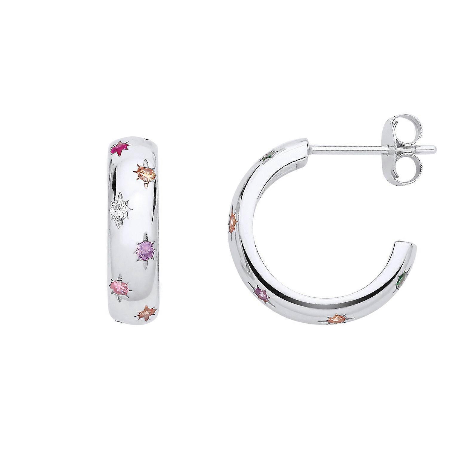 Jewelco London Ladies Rhodium Plated Sterling Silver Peach Pink Lilac CZ D-Shape Dome 3/4 Hoop Drop Earrings