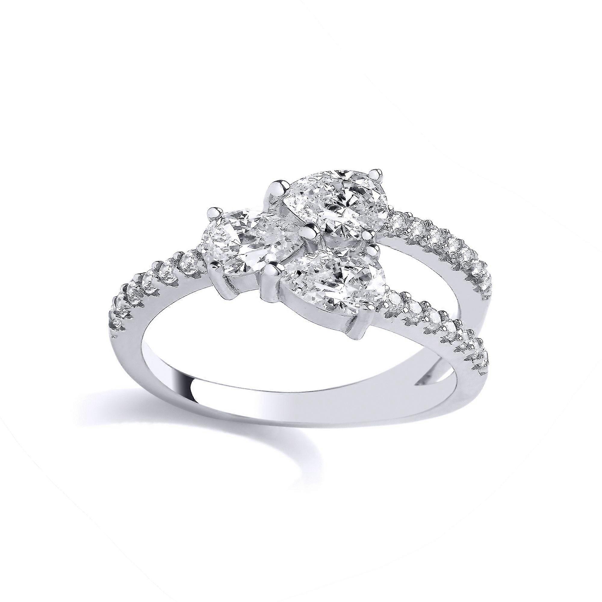 Jewelco London Ladies Rhodium Plated Sterling Silver Pear CZ 3 Headed Snake Split Eternity Ring