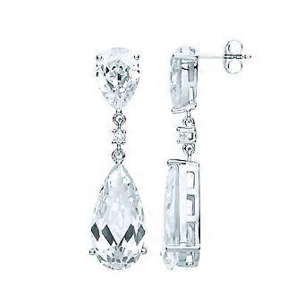 Jewelco London Ladies Rhodium Plated Sterling Silver Pear CZ Magic Mirror Raindrop Drop Earrings