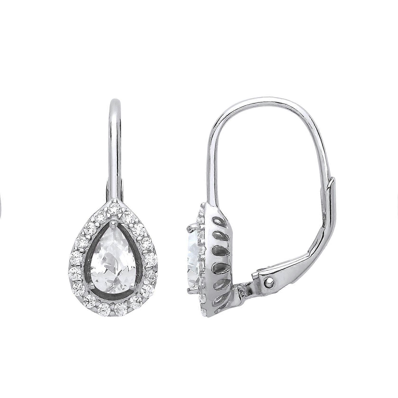 Jewelco London Ladies Rhodium Plated Sterling Silver Pear CZ Tears of Joy Halo Drop Earrings