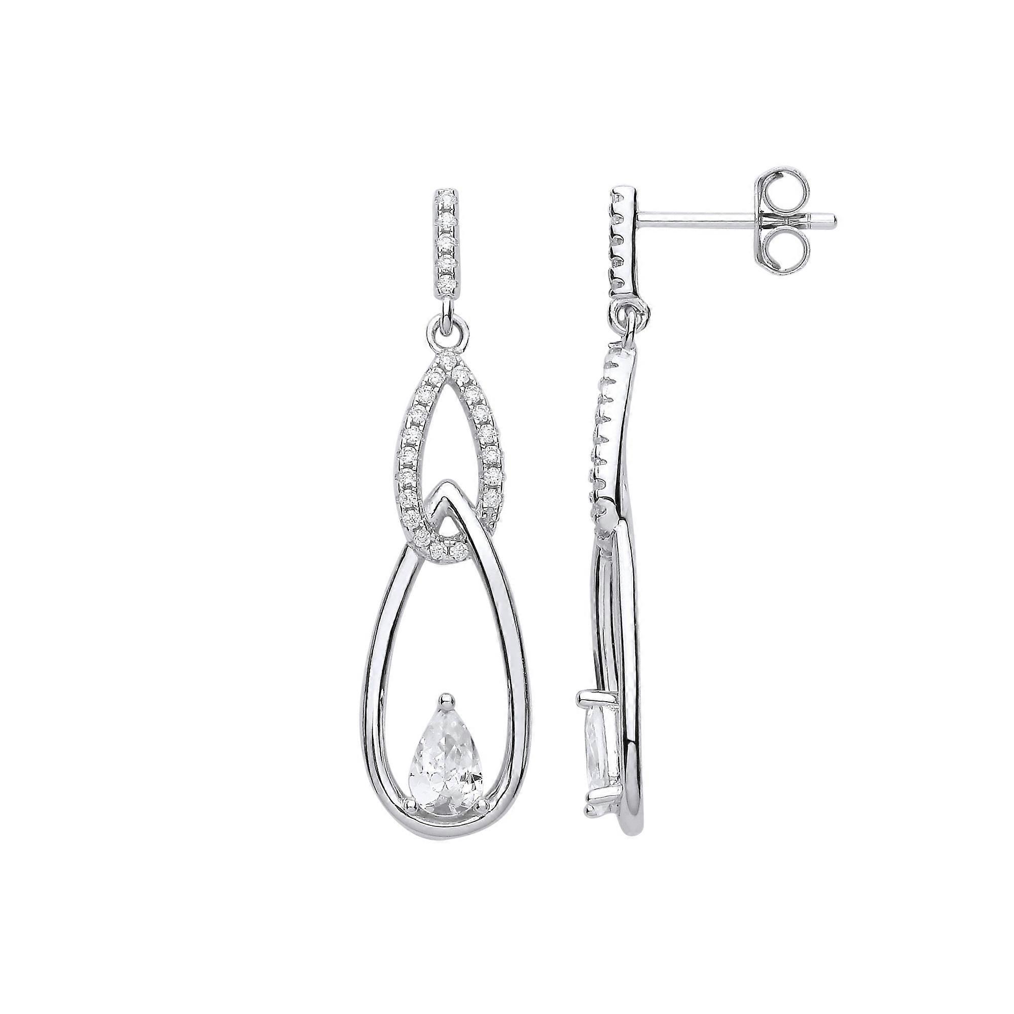 Jewelco London Ladies Rhodium Plated Sterling Silver Pear CZ Triple Tears of Joy Pear Drop Earrings