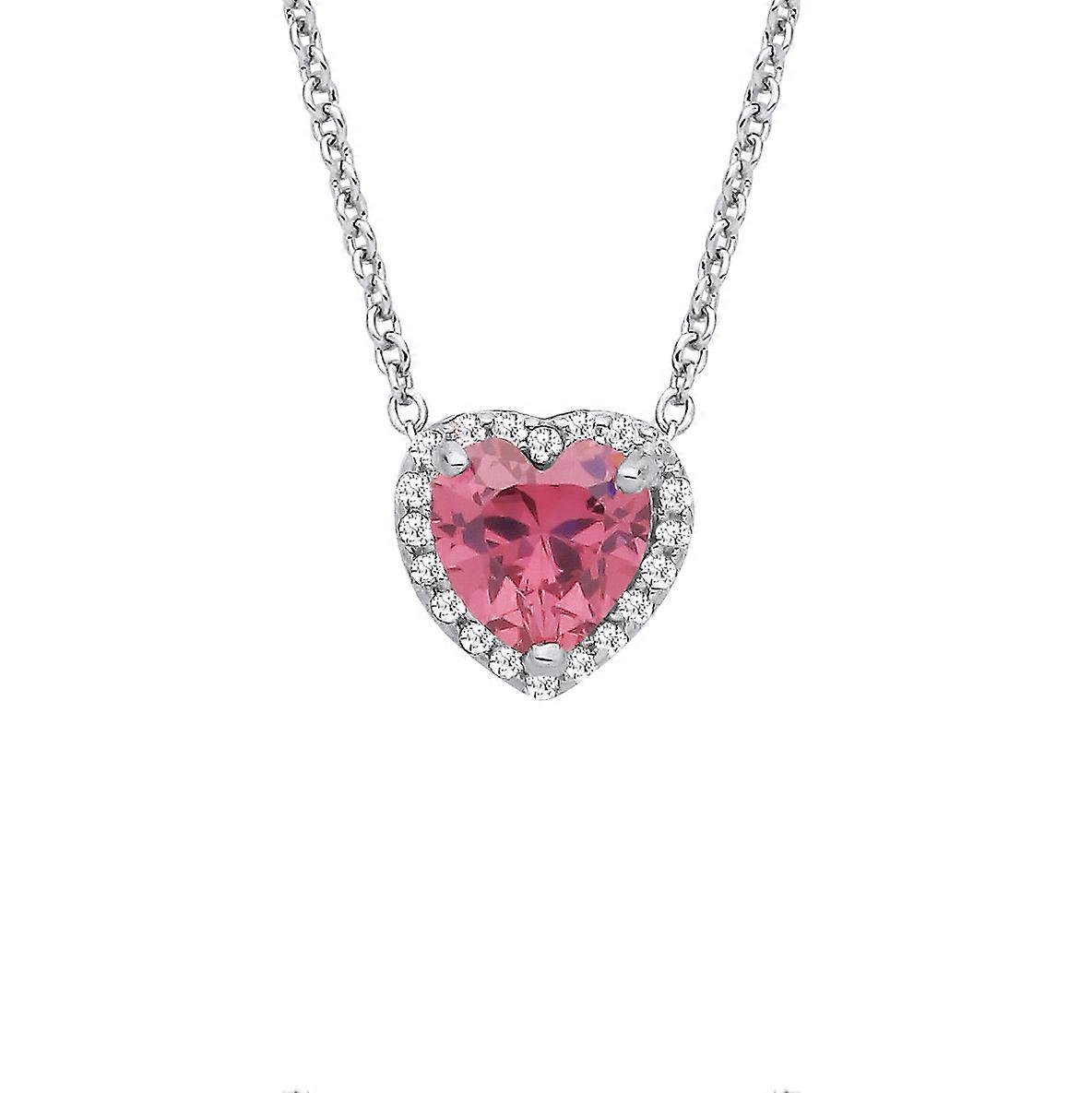 Jewelco London Ladies Rhodium Plated Sterling Silver Pink Heart CZ Love Heart Halo Solitaire Lavalier Necklace 16 inch