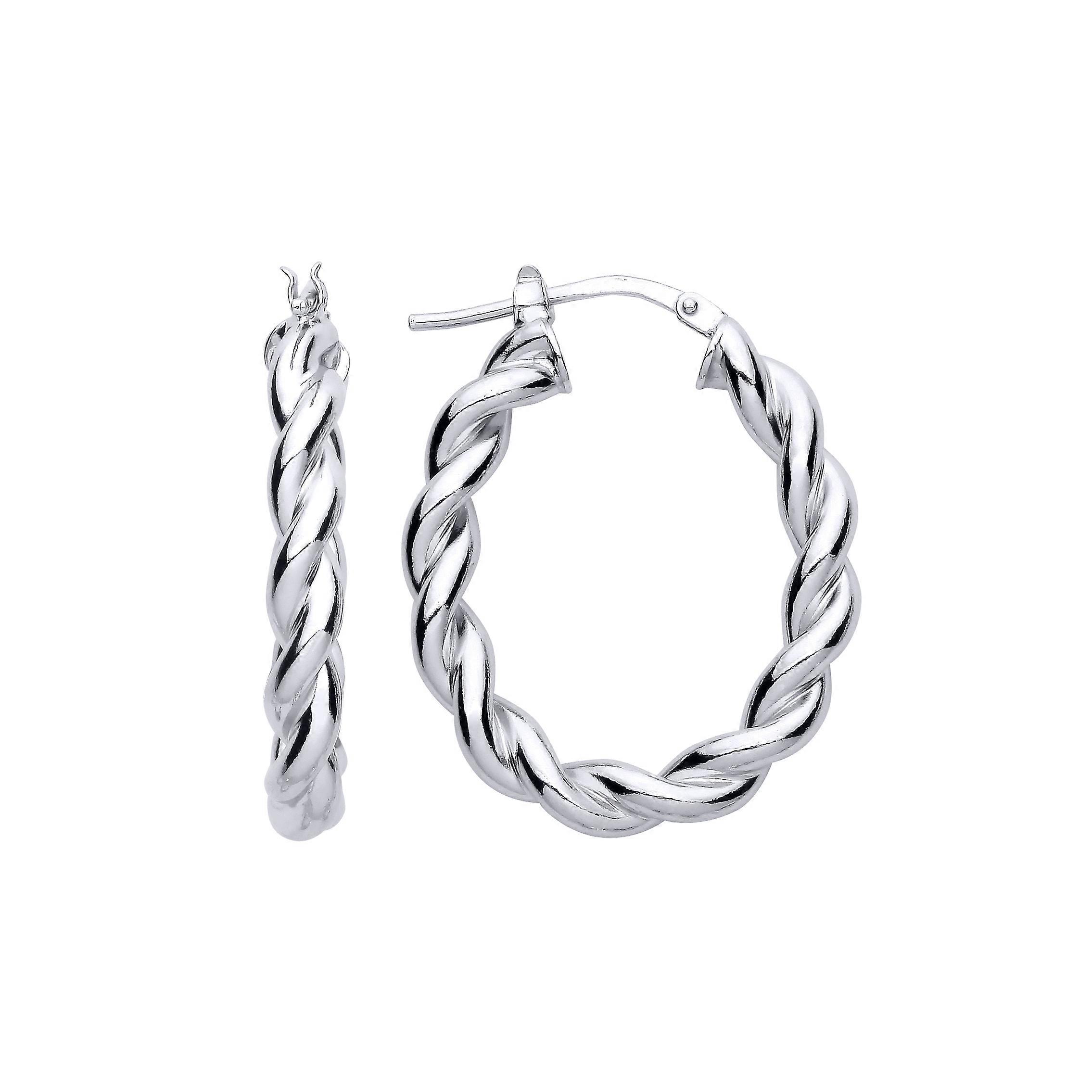 Jewelco London Ladies Rhodium Plated Sterling Silver Plaited Chunky Twist Oval Hoop Earrings 24mm 4mm