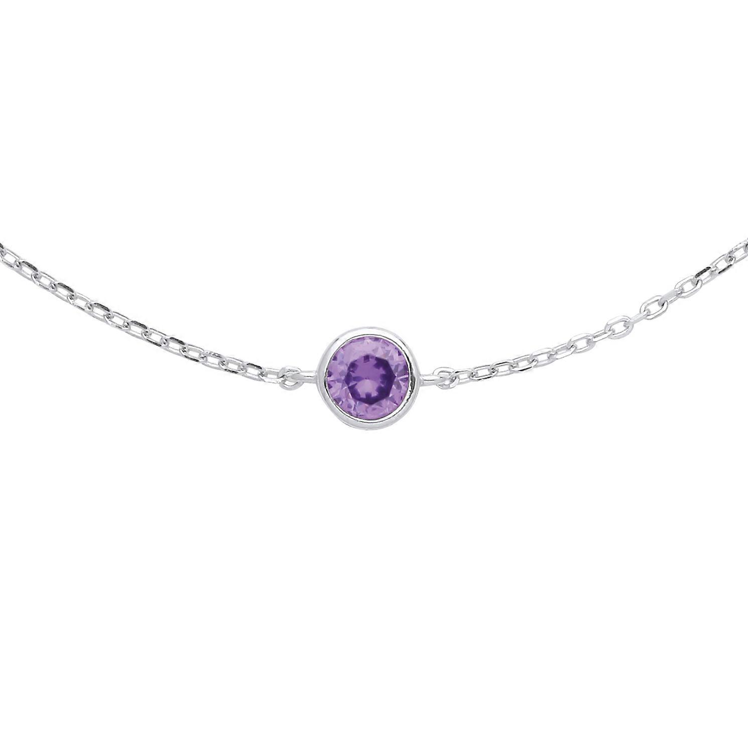 Jewelco London Ladies Rhodium Plated Sterling Silver Purple CZ Donut Solitaire Charm Bracelet 7 + 1 inch