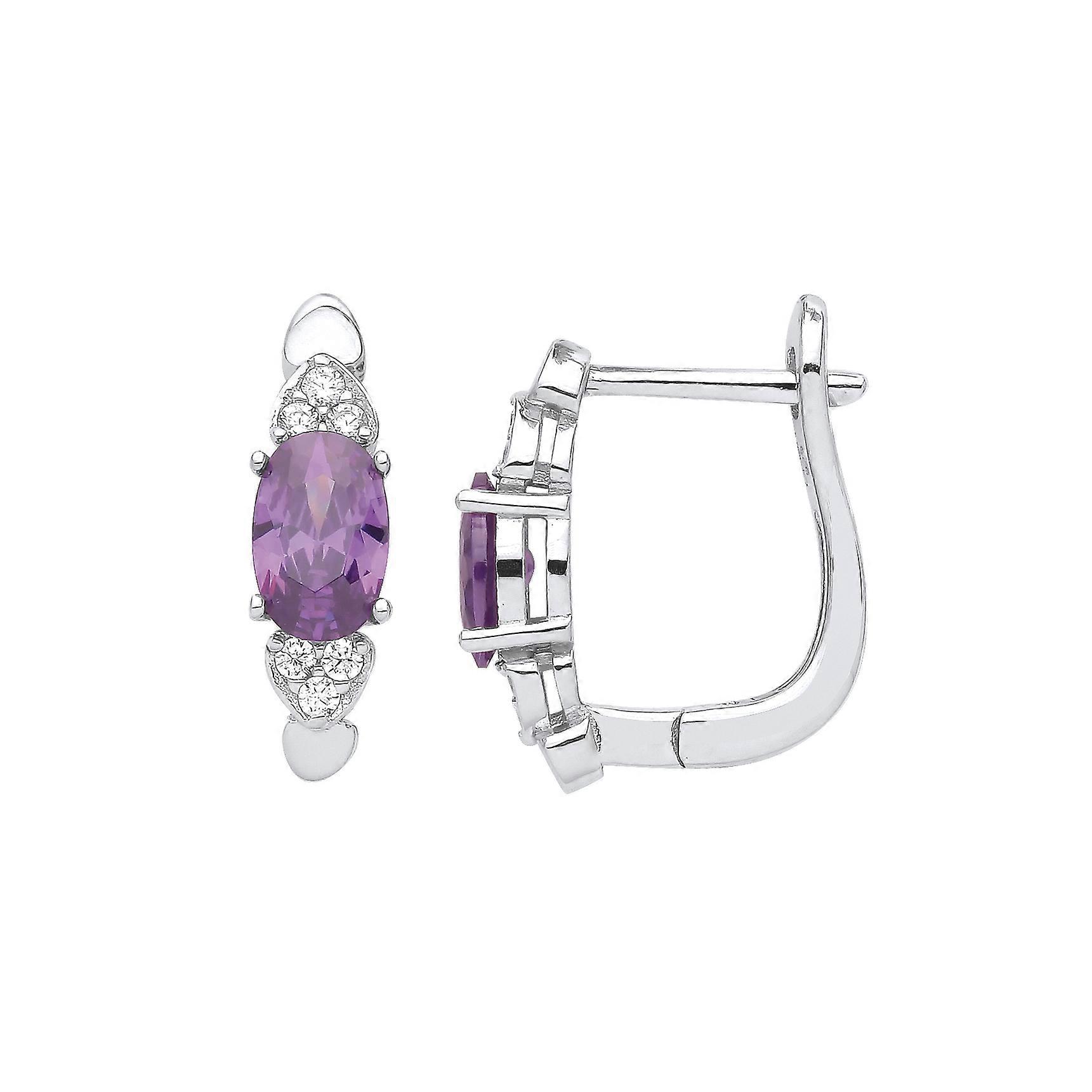 Jewelco London Ladies Rhodium Plated Sterling Silver Purple Oval CZ Love Hearts Arch Drop Earrings