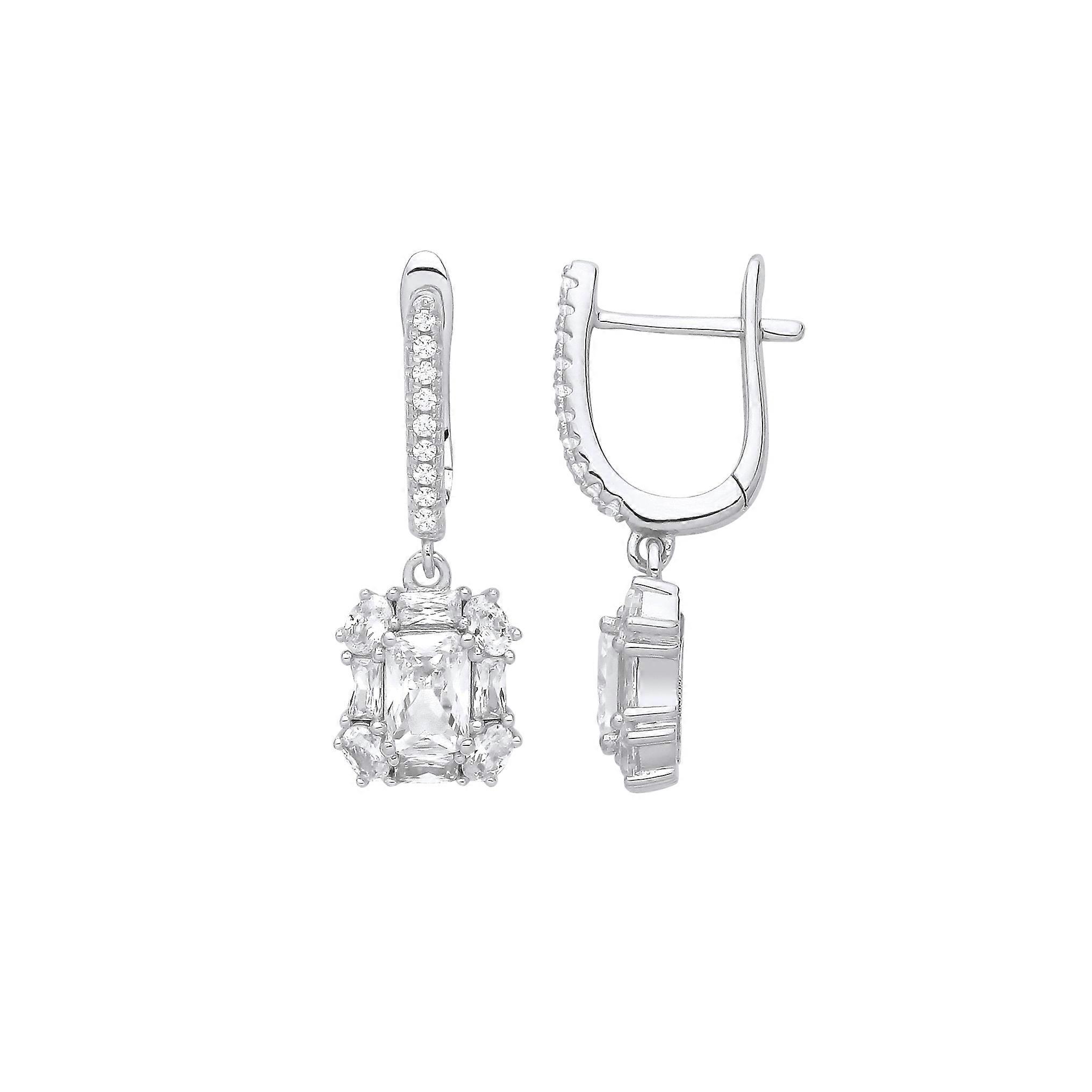 Jewelco London Ladies Rhodium Plated Sterling Silver Radiant Oval CZ Rounded Rectangle Cluster Drop Earrings
