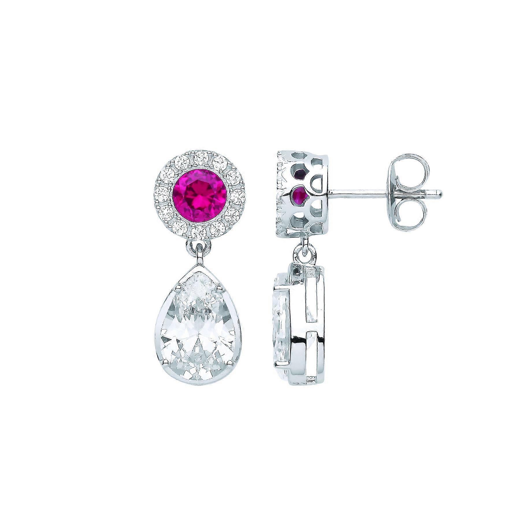Jewelco London Ladies Rhodium Plated Sterling Silver Red Pear CZ Raindrop Halo Cluster Solitaire Drop Earrings