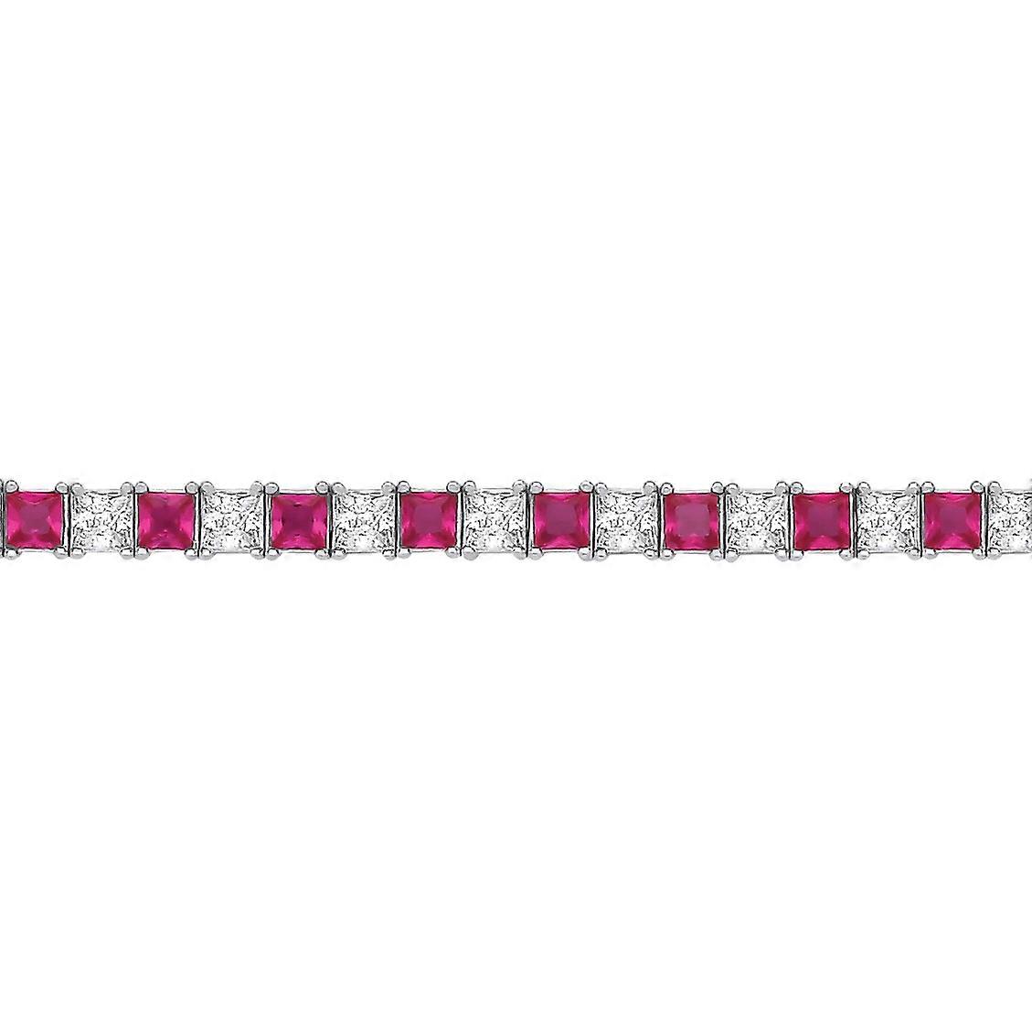 Jewelco London Ladies Rhodium Plated Sterling Silver Red Princess CZ Alternating Eternity Tennis Bracelet 3mm 7 inch
