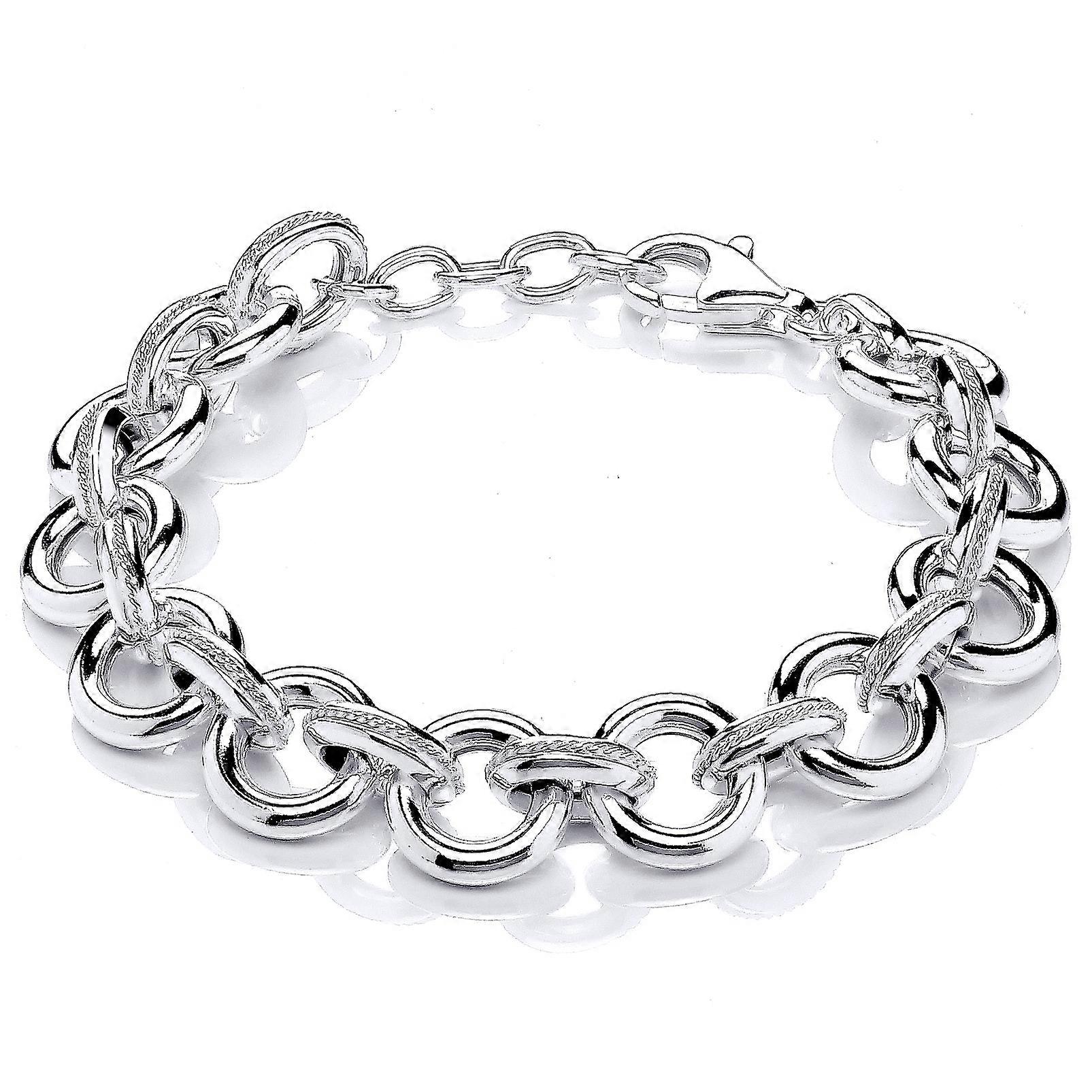 Jewelco London Ladies Rhodium Plated Sterling Silver Rope Donut Belcher Link Chain Bracelet 12mm 7 + 1 inch