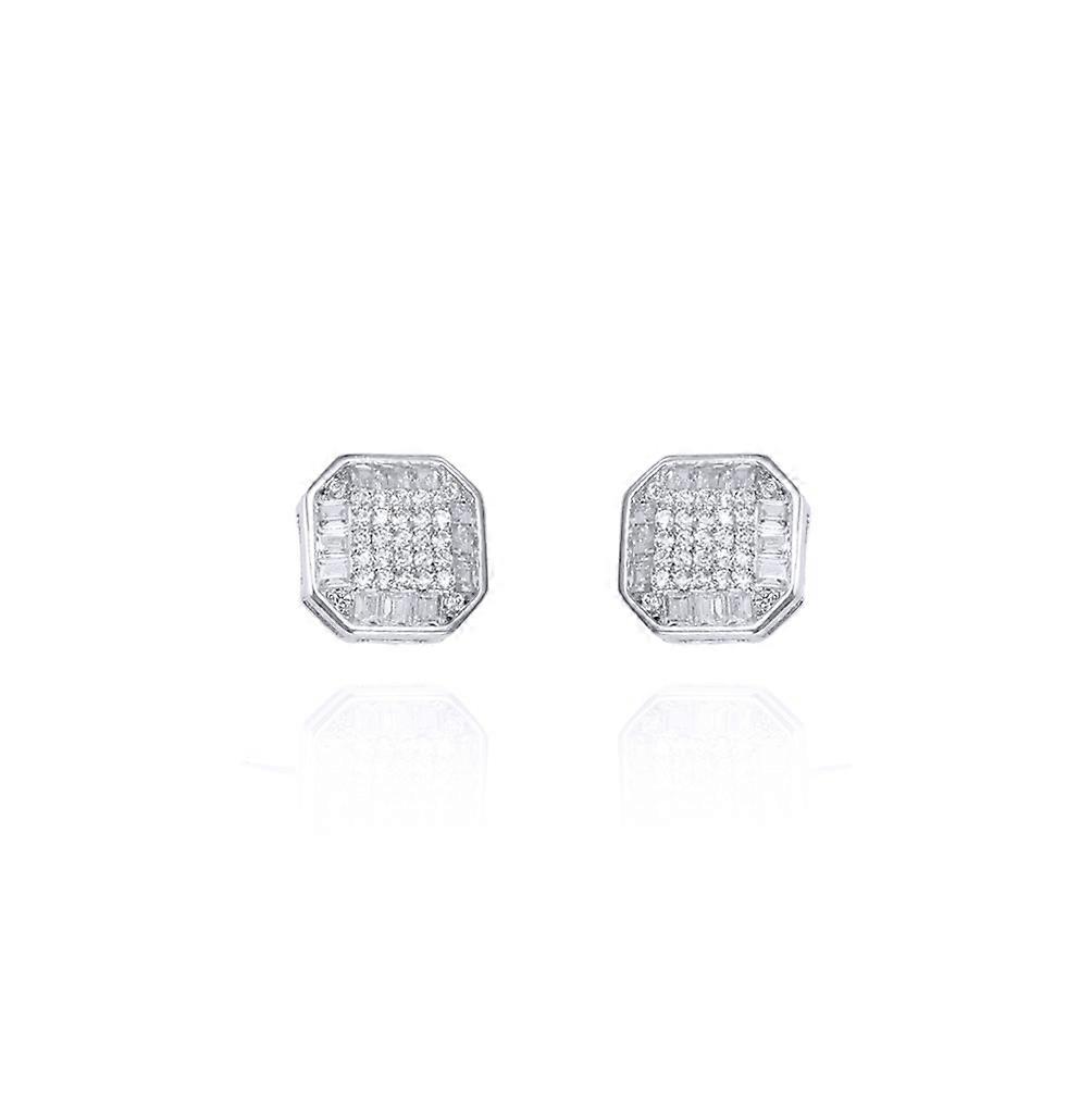 Jewelco London Ladies Rhodium Plated Sterling Silver Round & Baguette Cubic Zirconia Square Octagonal Stud Earrings