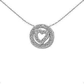 Jewelco London Ladies Rhodium Plated Sterling Silver Round Brilliant Cubic Zirconia Halo Love Heart Love Heart Pendant