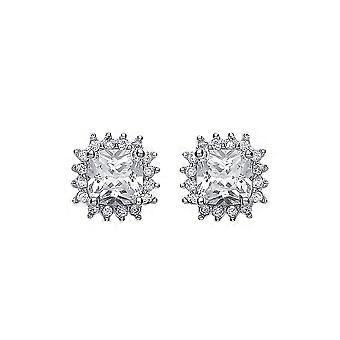 Jewelco London Ladies Rhodium Plated Sterling Silver Round & Cushion Cubic Zirconia Spikey Halo Solitaire Stud Earrings