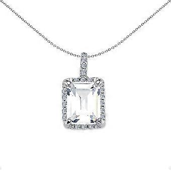 Jewelco London Ladies Rhodium Plated Sterling Silver Round & Emerald-cut Cubic Zirconia Halo Solitaire Solitaire Pendant