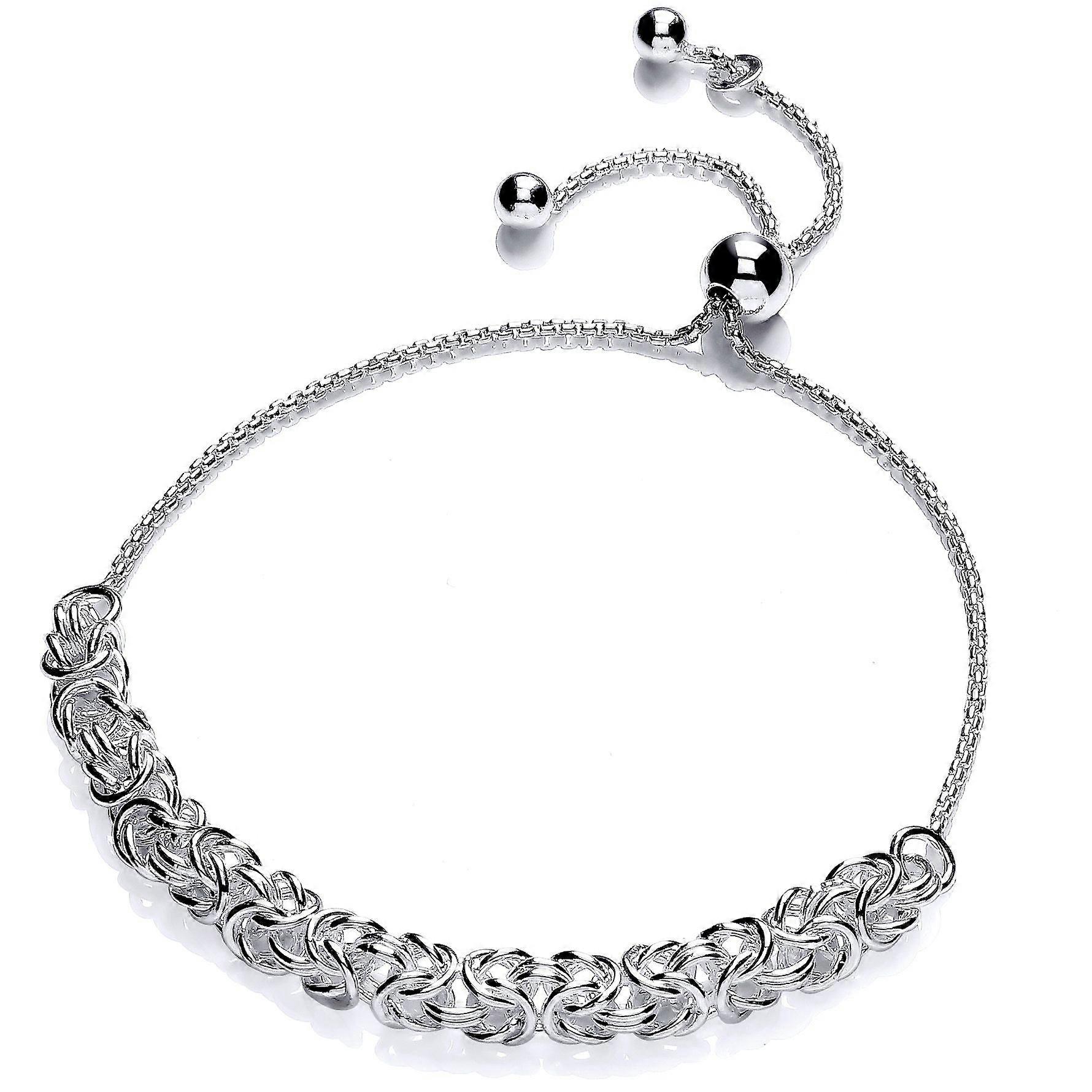 Jewelco London Ladies Rhodium Plated Sterling Silver Rounded 3D Square Byzantine Adjustable Slider Bracelet 6mm