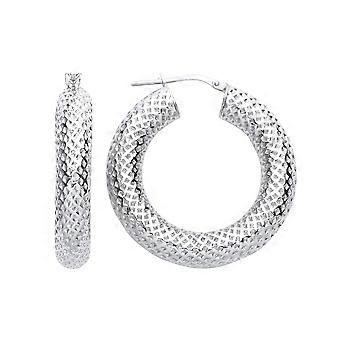 Jewelco London Ladies Rhodium Plated Sterling Silver Snake Skin Mesh Hoop Earrings