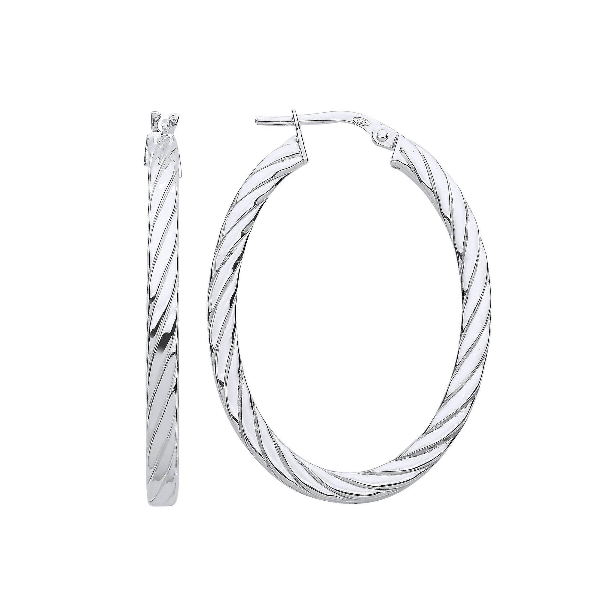 Jewelco London Ladies Rhodium Plated Sterling Silver Square Tube Twisted Oval Hoop Earrings