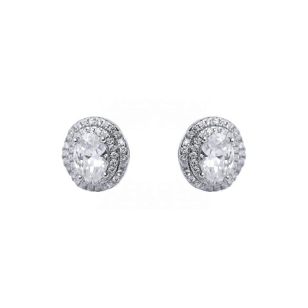 Jewelco London Ladies Rhodium Plated Sterling Silver White Round & Oval Cubic Zirconia 3-tier Wedding Cake Stud Earrings. Fitted with post and butterfly fittings for security Height: 11mm Width: 10mm Weight: 3.5g Centre Stone: 5.5 x 7mm GEMSTONE: Cubic Zirconia, Oval, White, 5.5mm x 7mm, Simulated GEMSTONE 2: Cubic Zirconia, Round, White, 5.5mm x 7mm, Simulated SKU: AES134