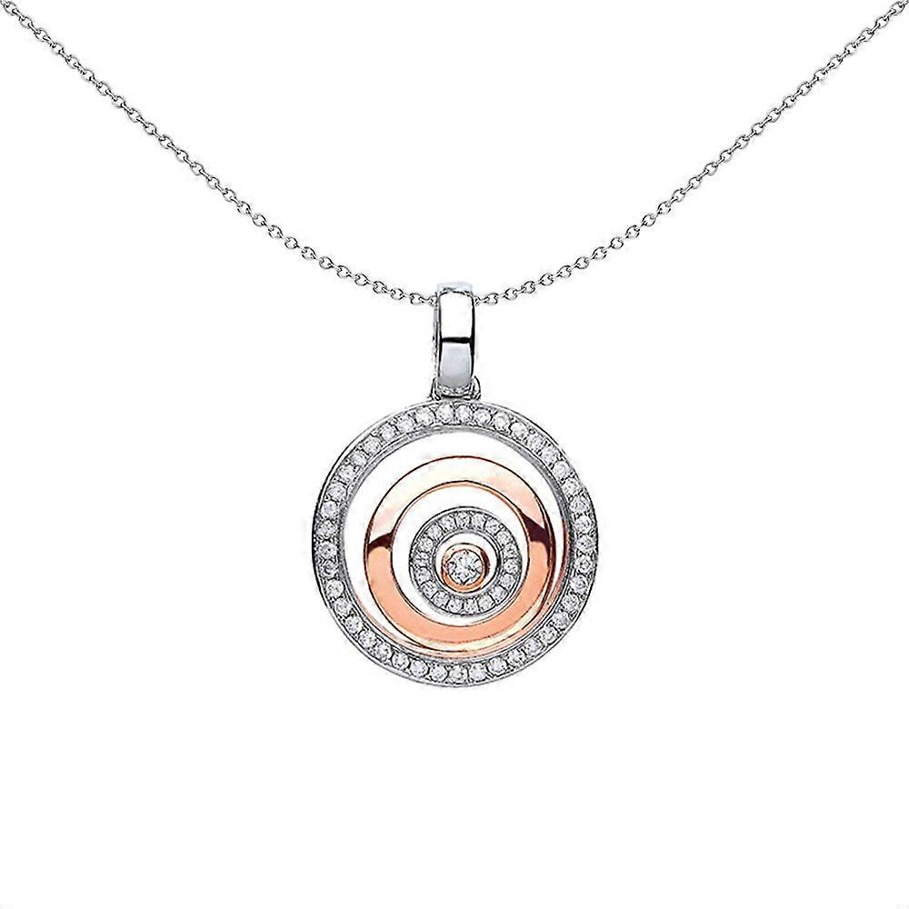 Jewelco London Ladies Rhodium & Rose Gold-Plated Sterling Silver Cubic Zirconia Floating Stone Halo Rings Pendant Necklace 18 inch