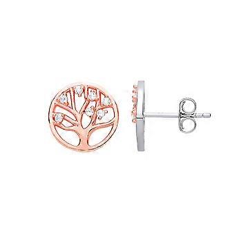 Jewelco London Ladies Rhodium & Rose Gold-Plated Sterling Silver Cubic Zirconia Tree of Life Cluster Stud Earrings