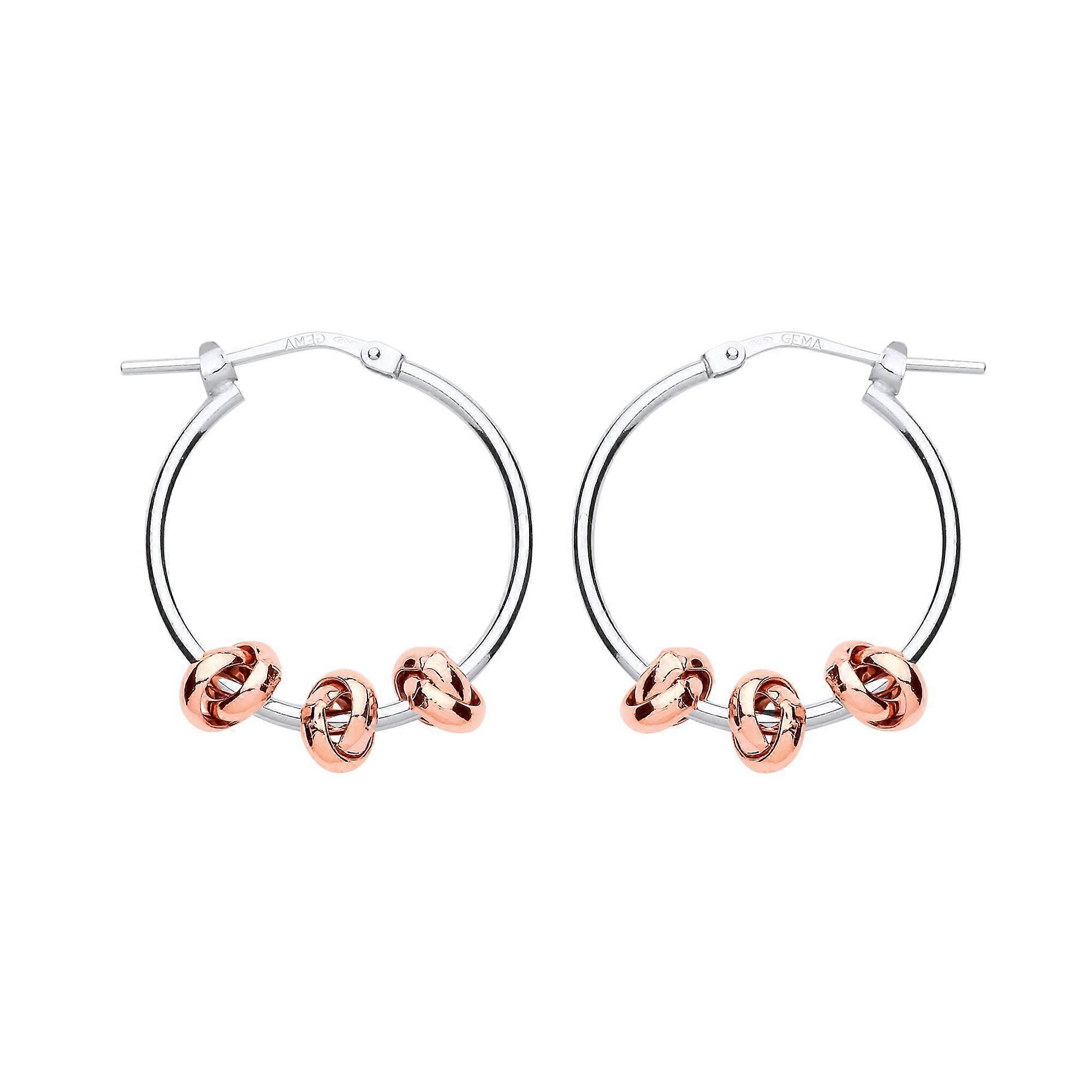 Jewelco London Ladies Rhodium & Rose Gold-Plated Sterling Silver Triple Knot Hoop Earrings 24mm