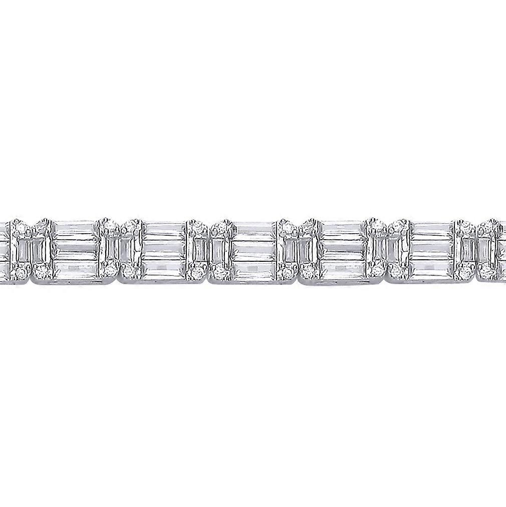 Jewelco London Ladies Rhodium Sterling Silver Baguette CZ Art Deco Penta Cluster Tennis Bracelet