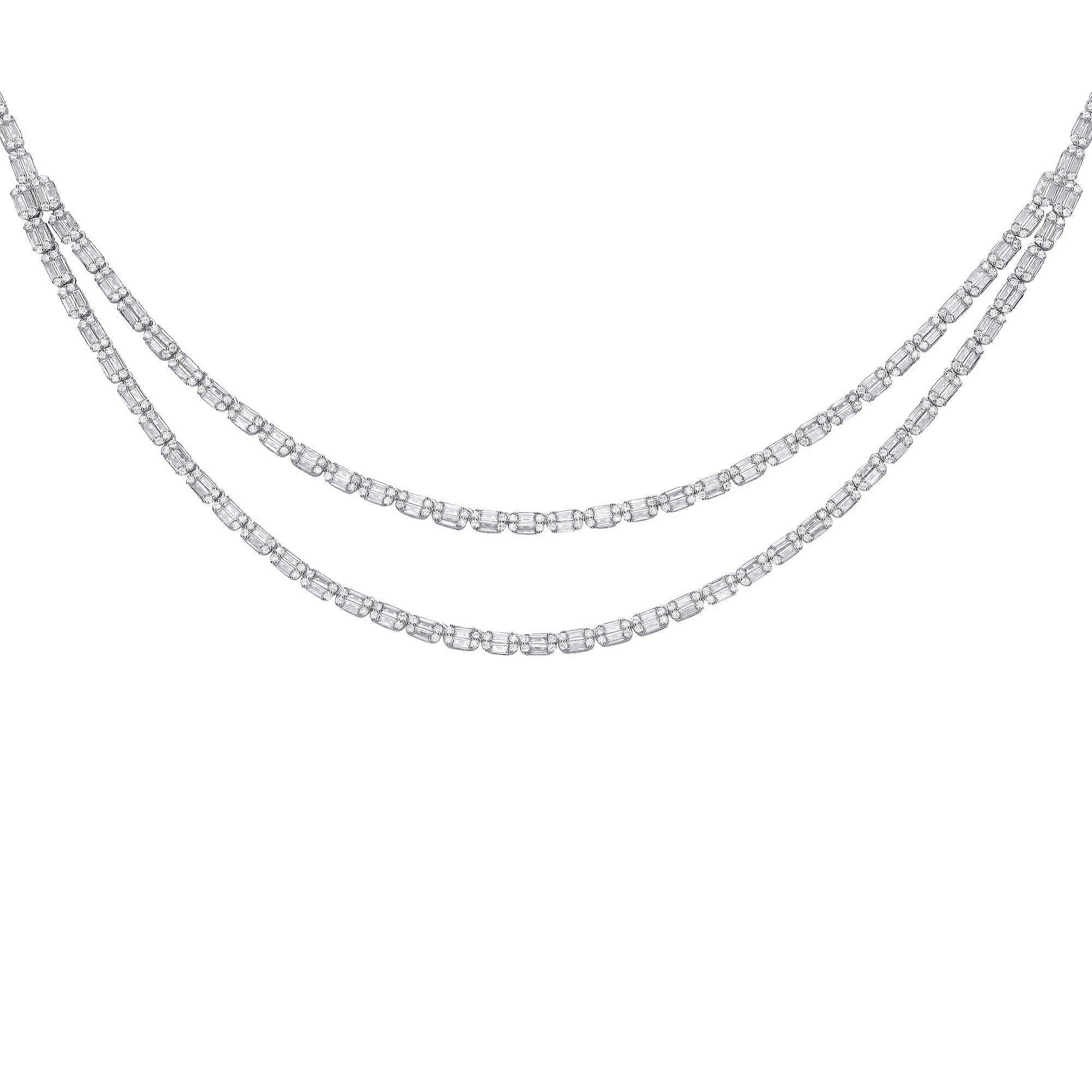 Jewelco London Ladies Rhodium Sterling Silver Baguette CZ Art Deco Raindrop Cluster Tennis Necklace