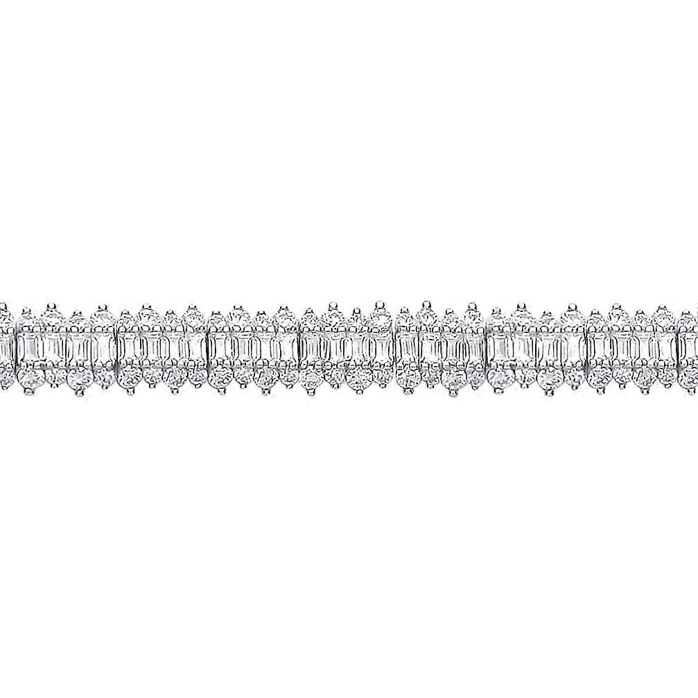 Jewelco London Ladies Rhodium Sterling Silver Baguette CZ Fizzy Row Tennis Bracelet