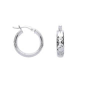 Jewelco London Ladies Rhodium Sterling Silver Chunky Criss Cross Round Hoop Creole Earrings