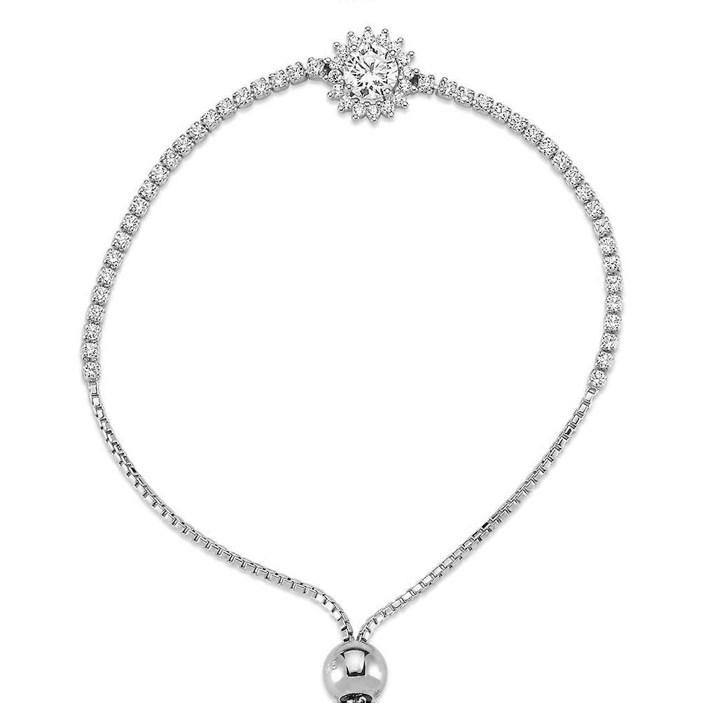 Jewelco London Ladies Rhodium Sterling Silver CZ Sunshine Cluster Eternity Line 1.1mm Adjustable Slider Bracelet, 8.5"