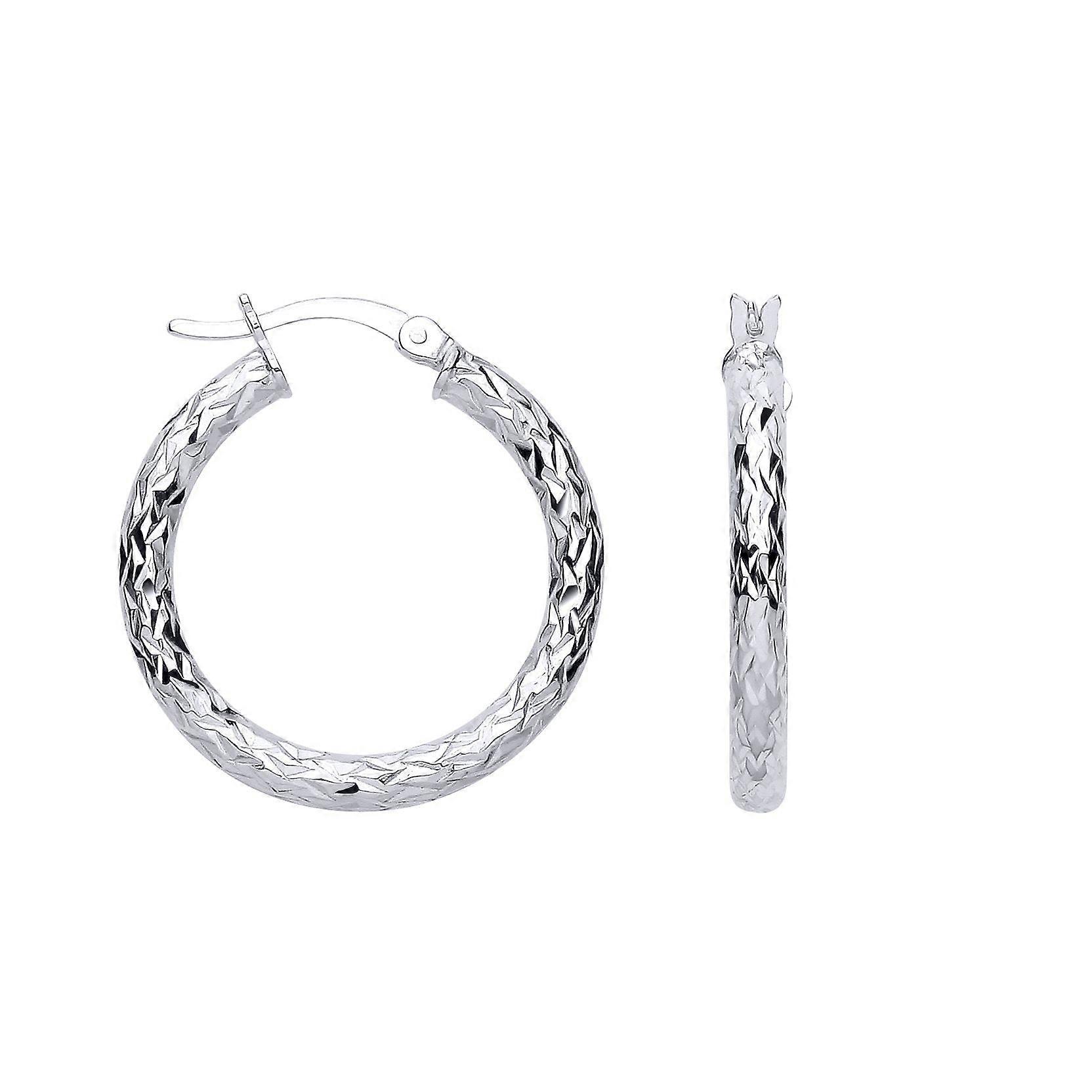 Jewelco London Ladies Rhodium Sterling Silver Hammered Crinkle Wreath Hoop Earrings